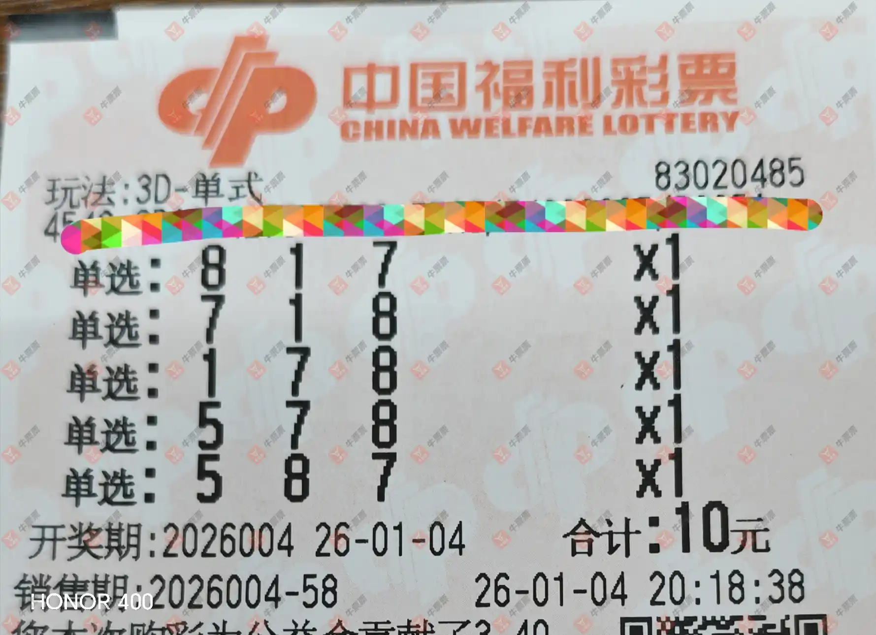 福彩3D 2026004期