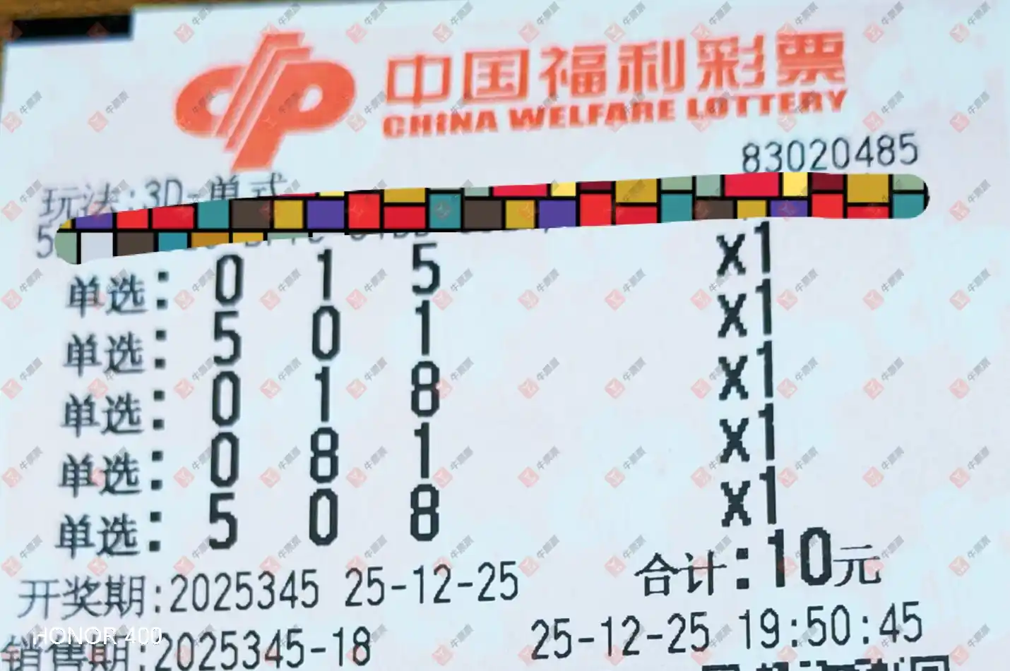 福彩3D 2025345期