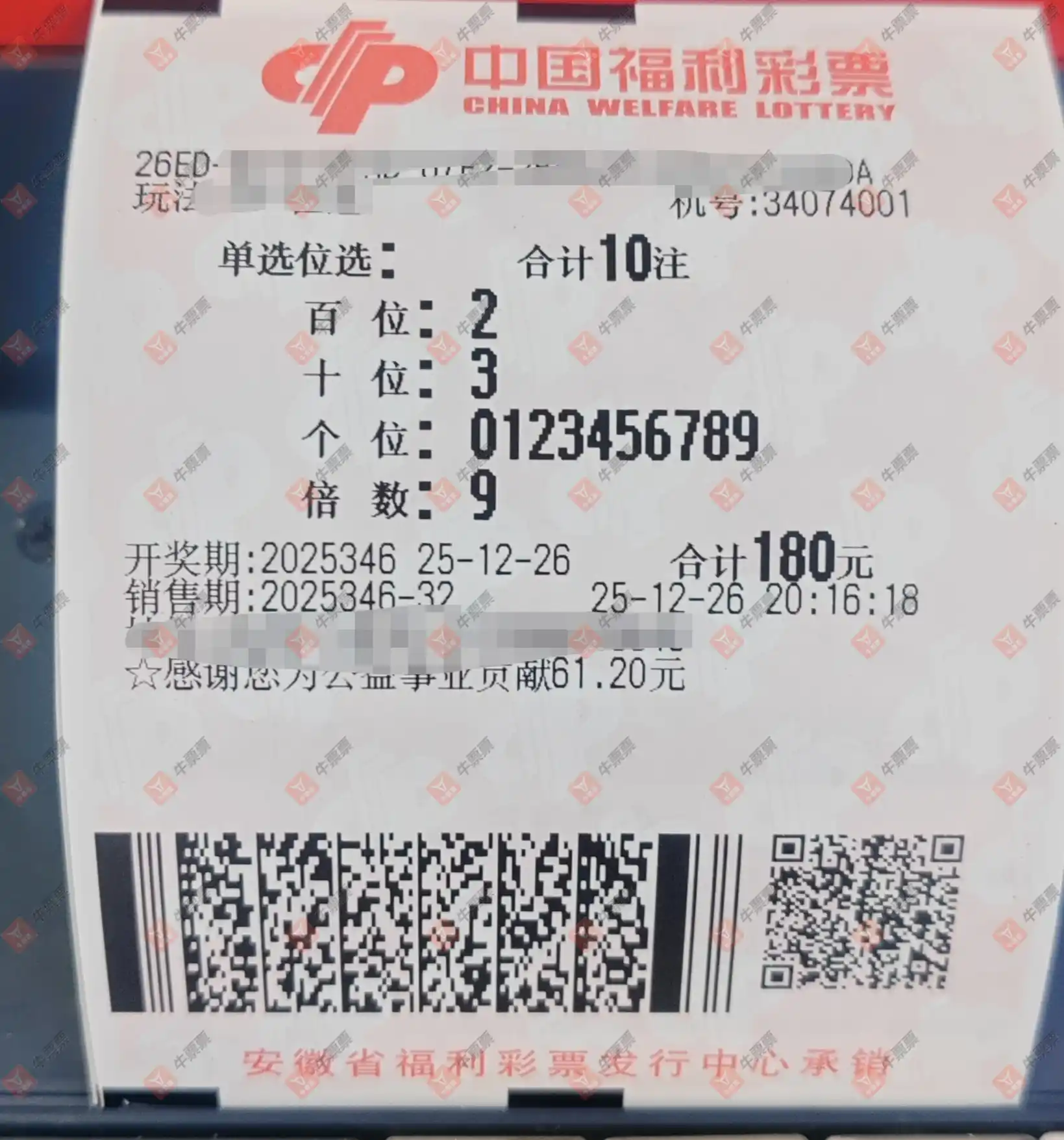 福彩3D 2025346期