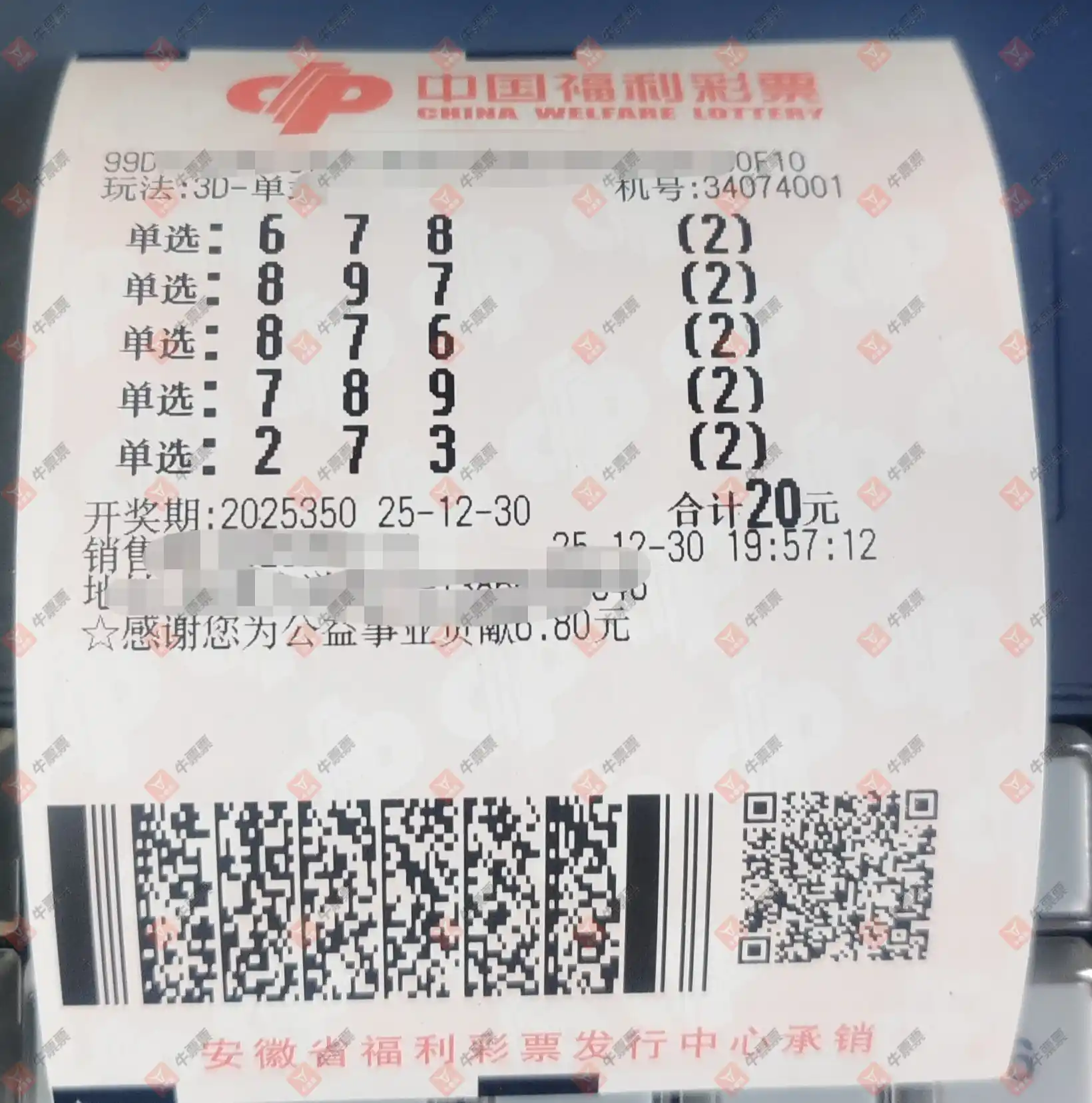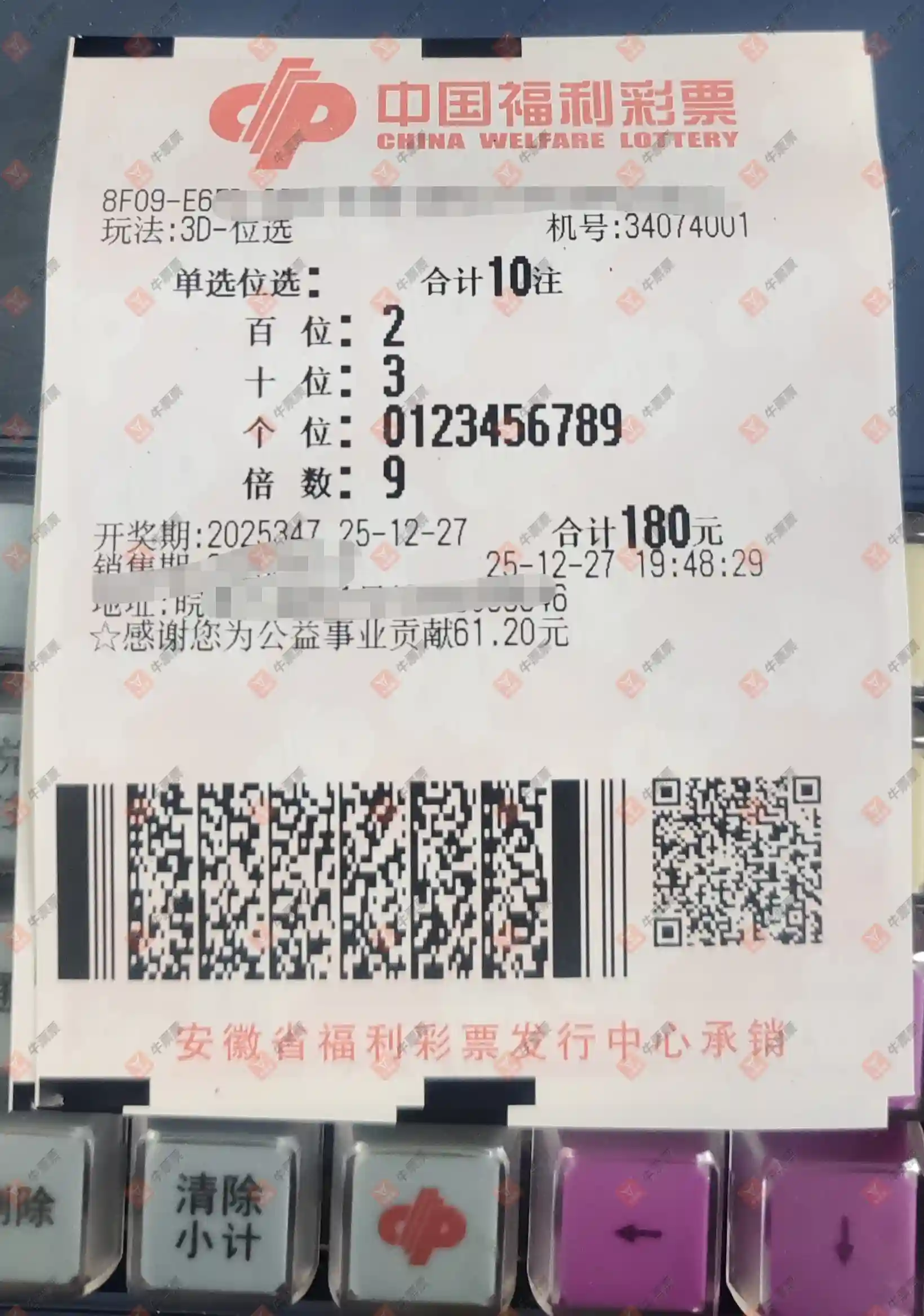 福彩3D 2025345期