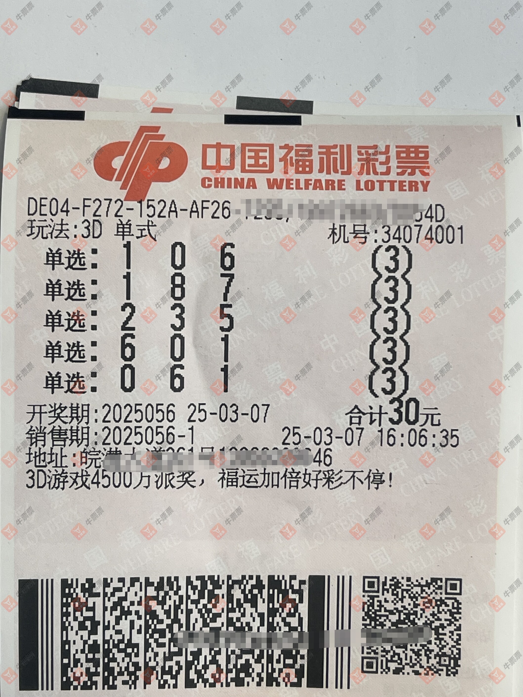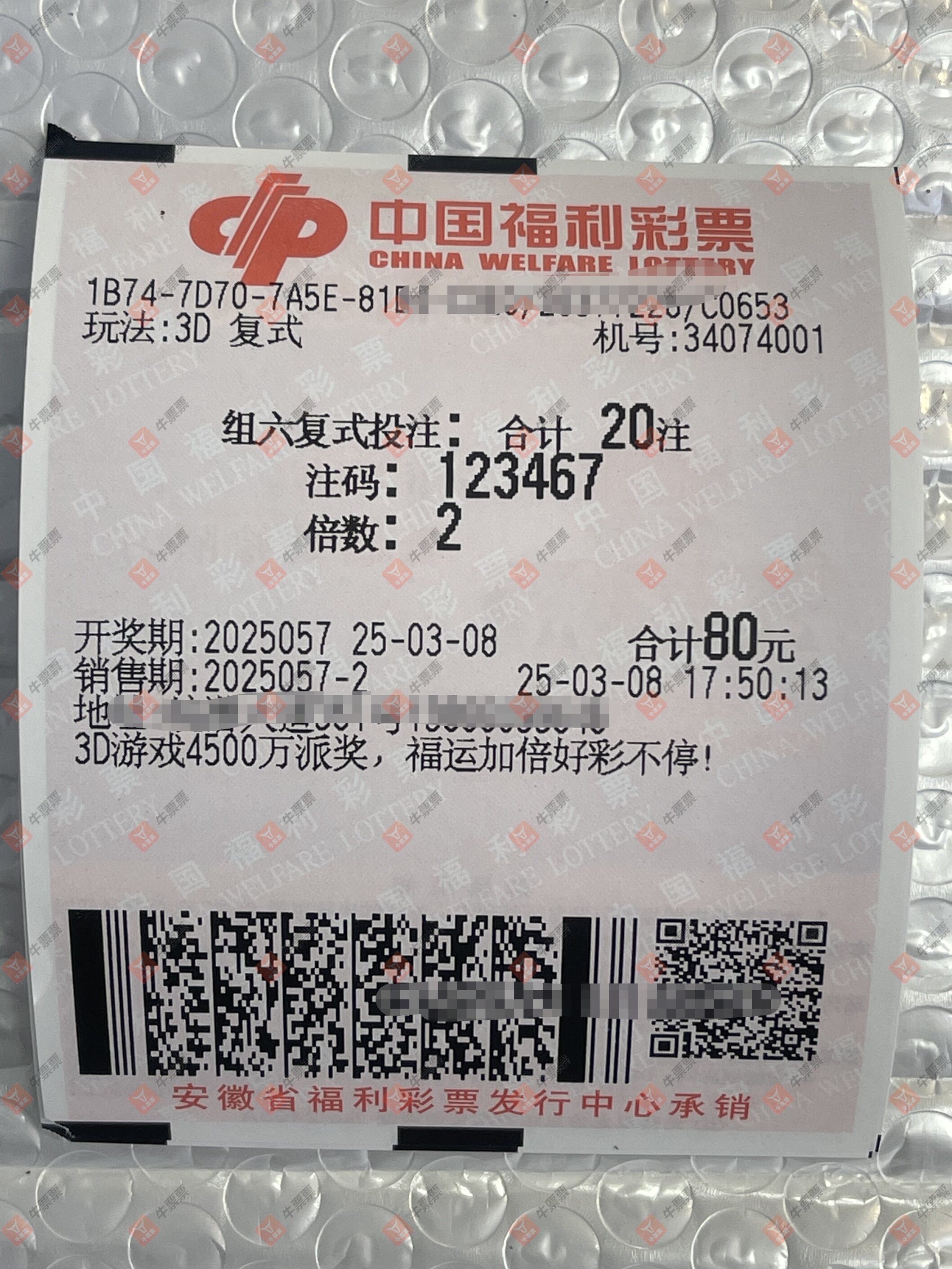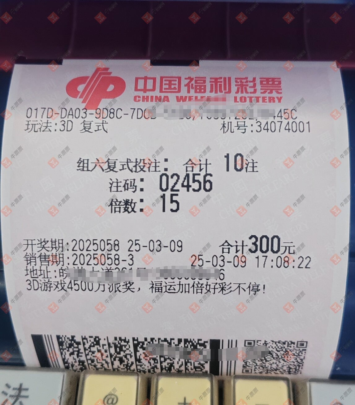 福彩3D 2025058期 晒中