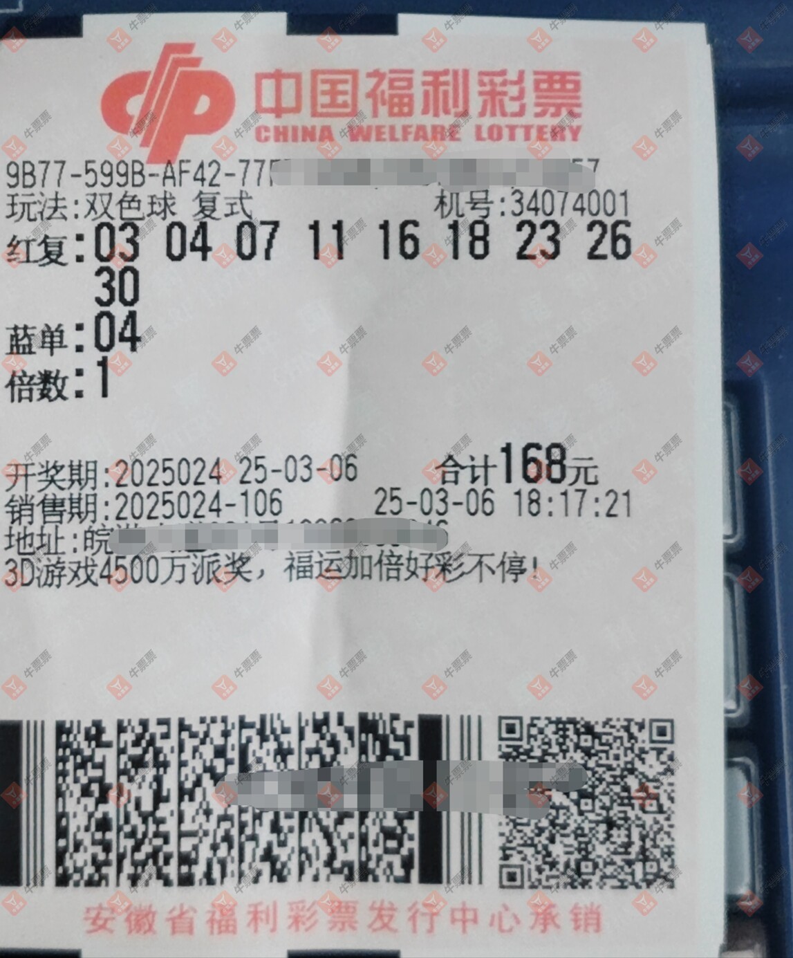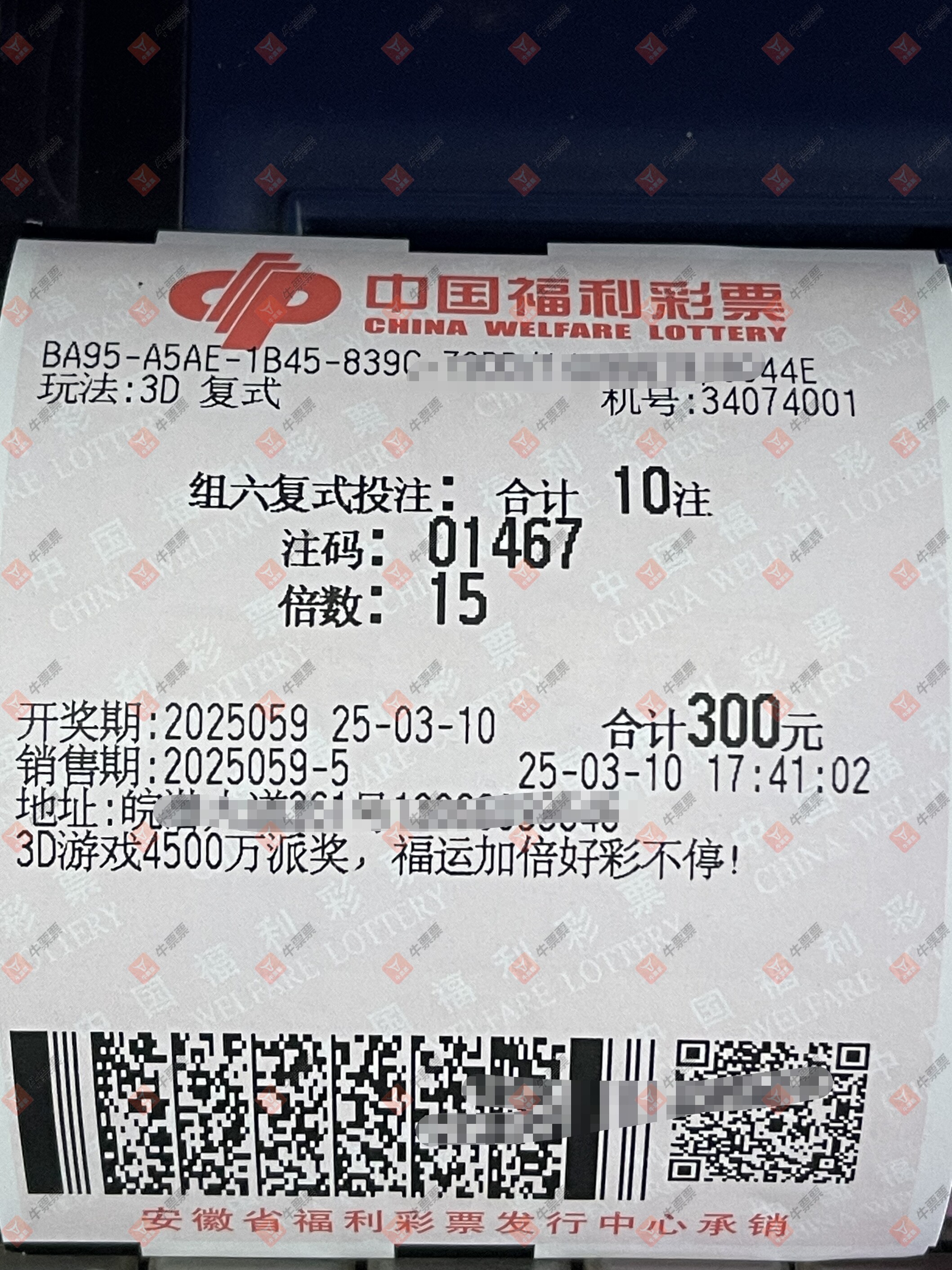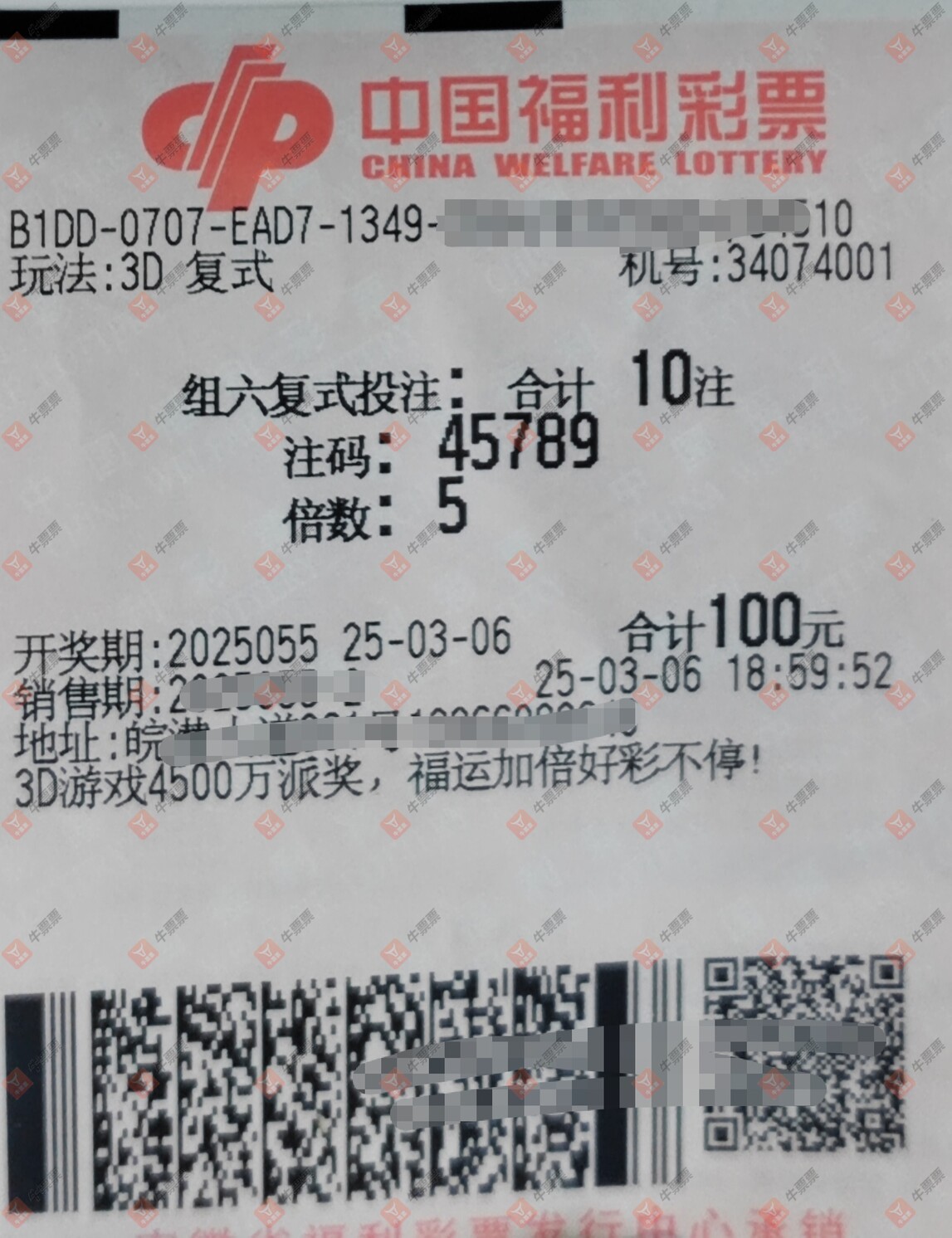 福彩3D 2025058期 晒中