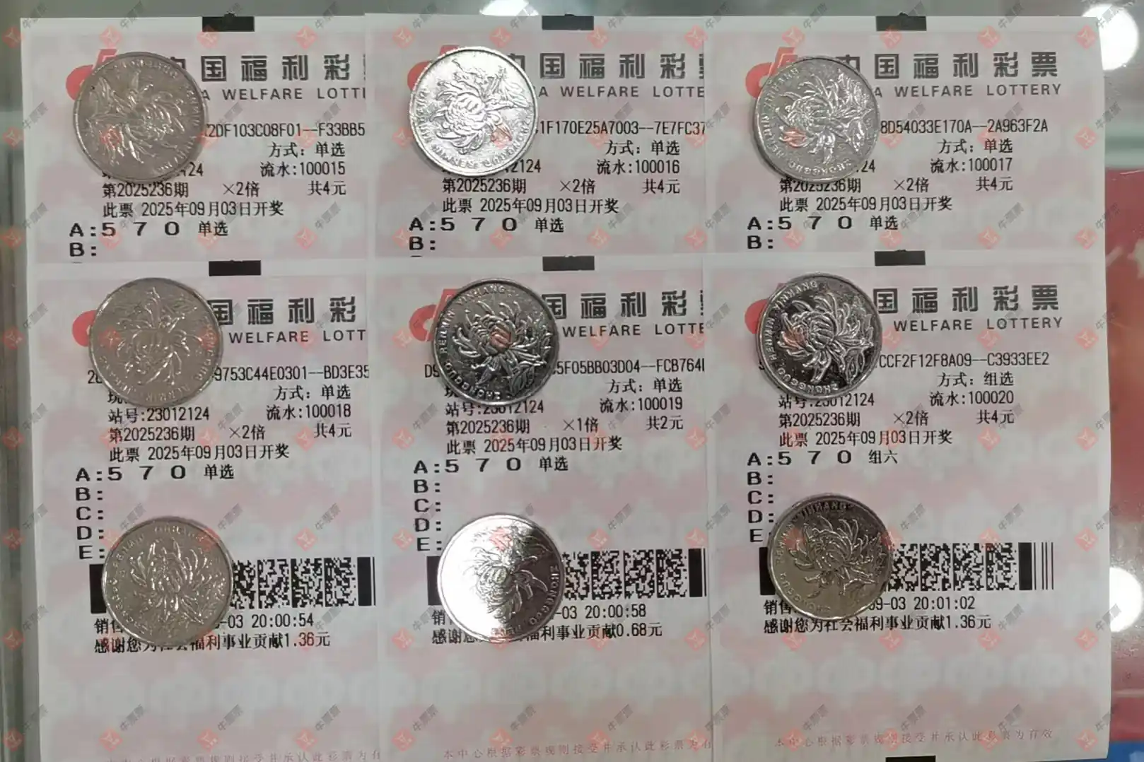 福彩3D 2025238期 晒中