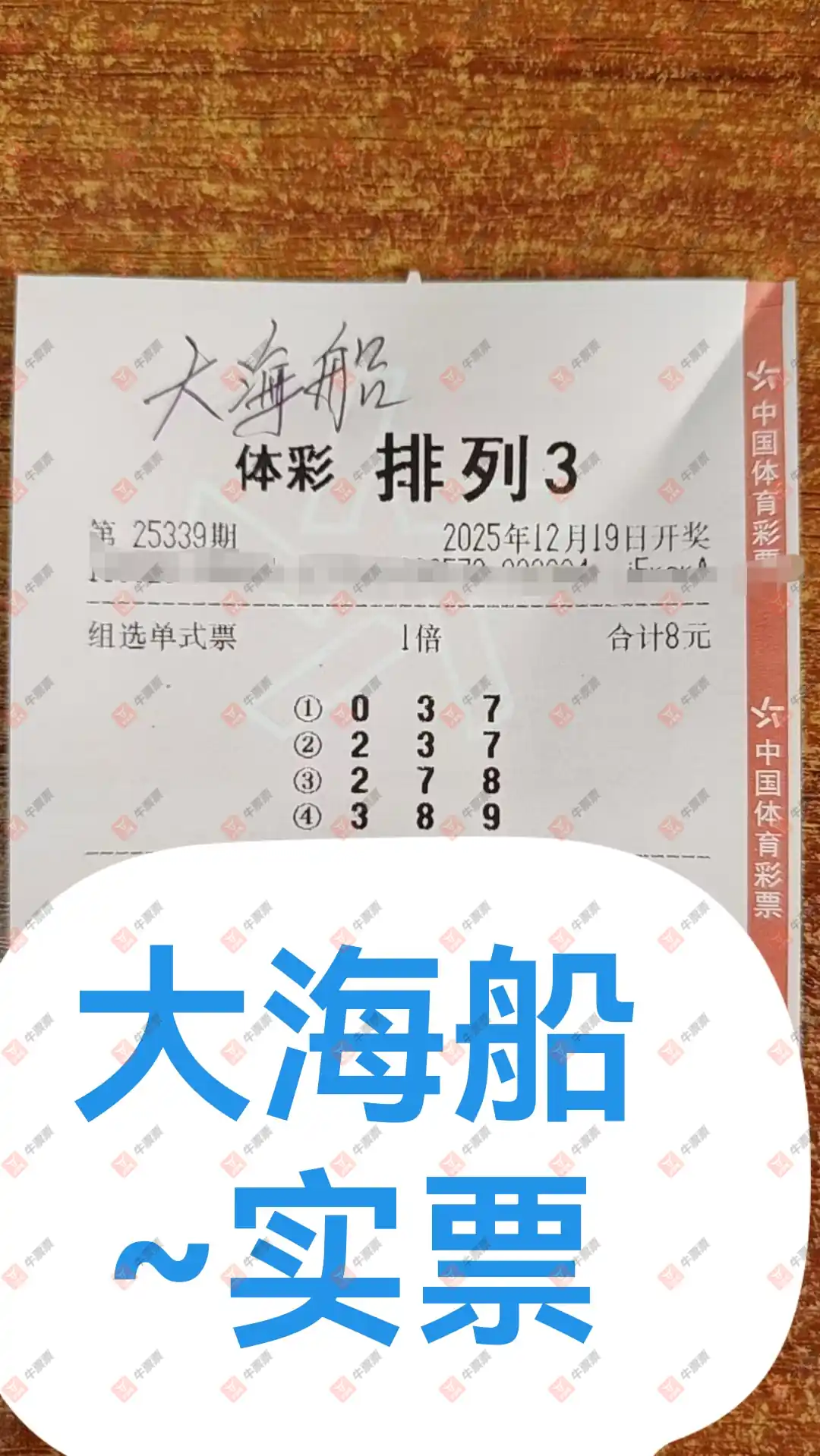 福彩3D 2025307期