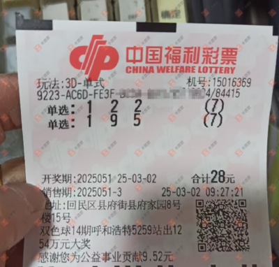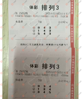 福彩3D 2025052期