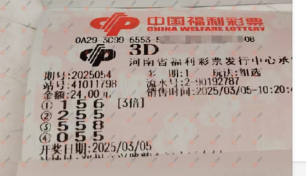 福彩3D 2025055期