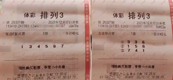 排列三 2025337期