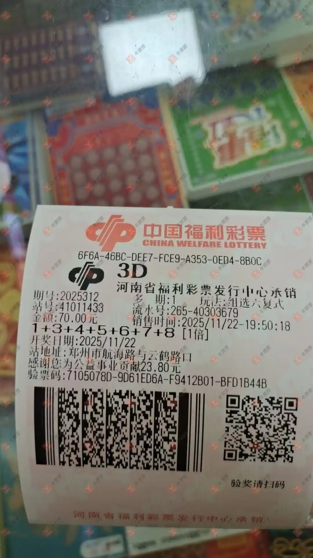 福彩3D 2025313期 晒中