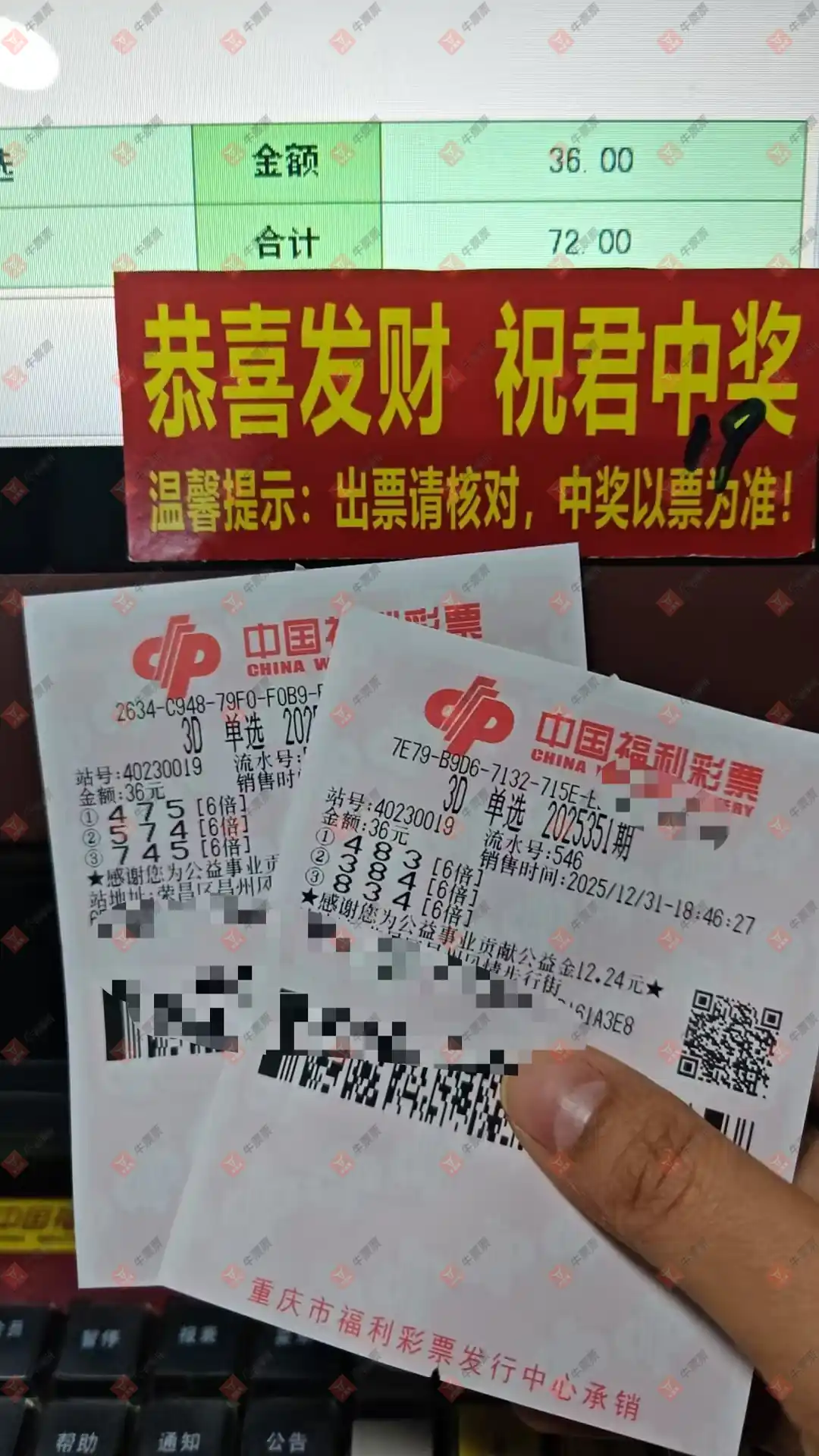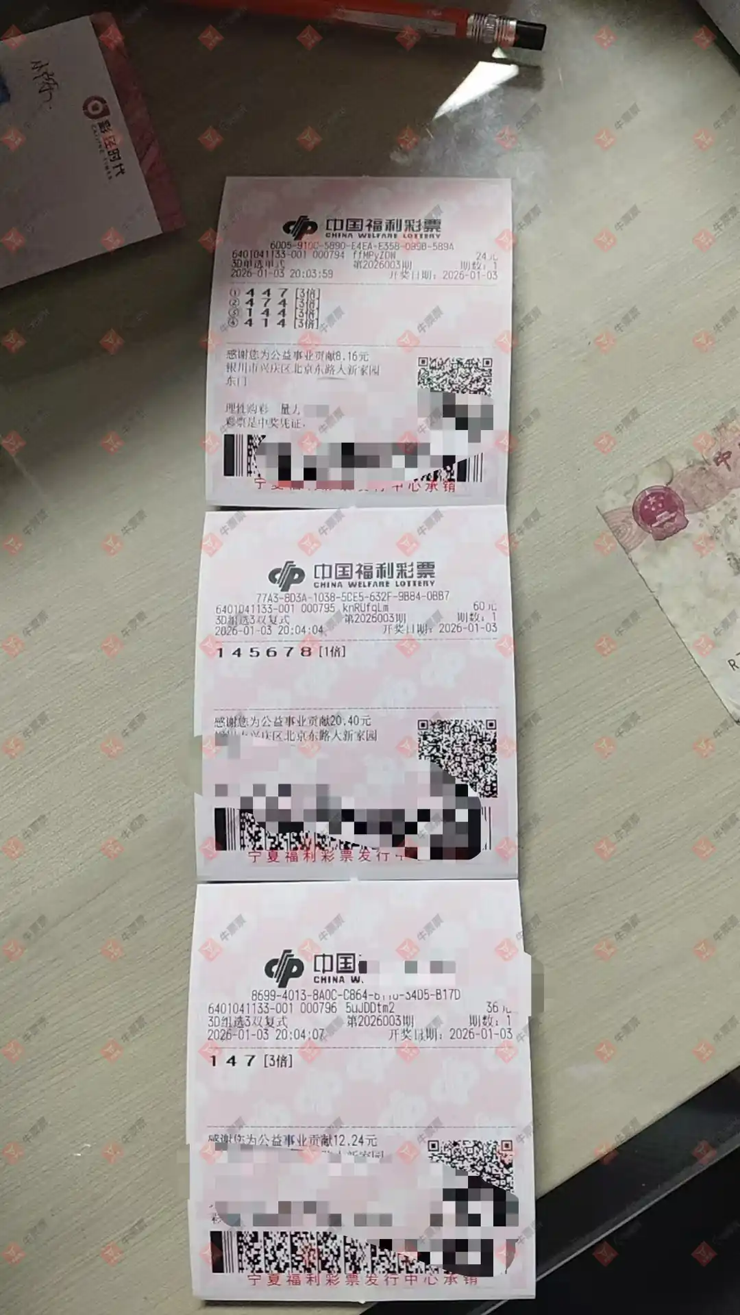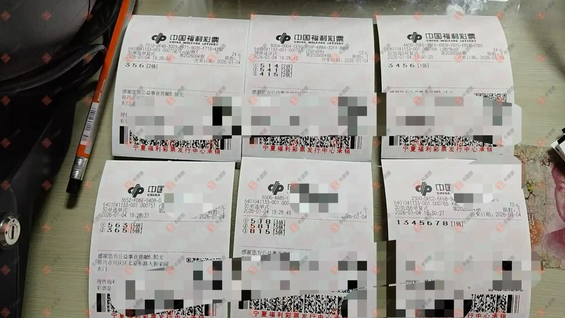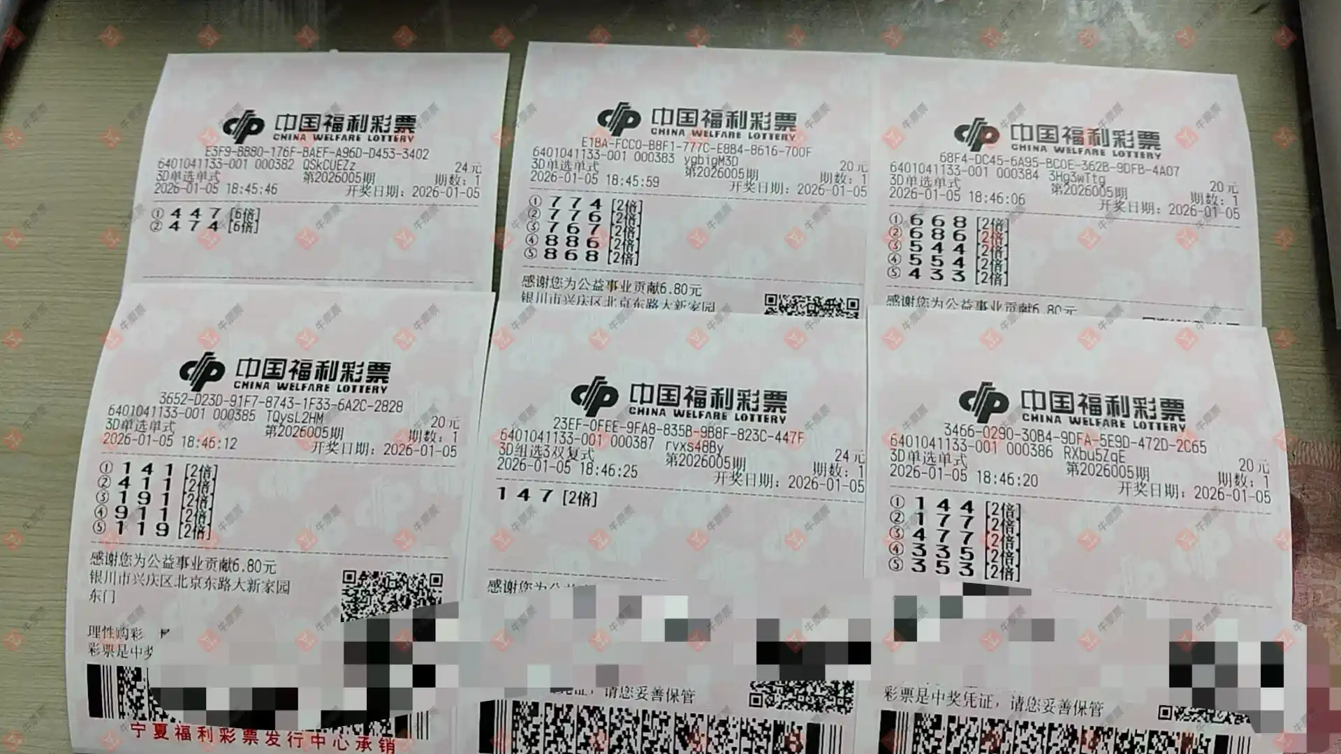 福彩3D 2026001期 晒中