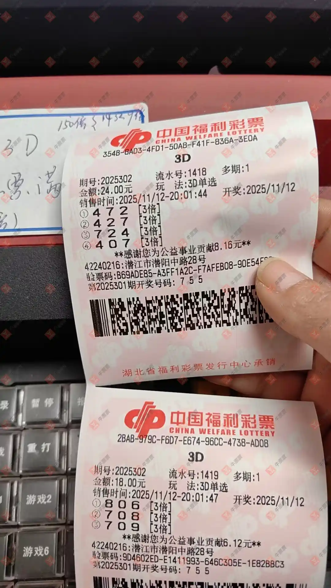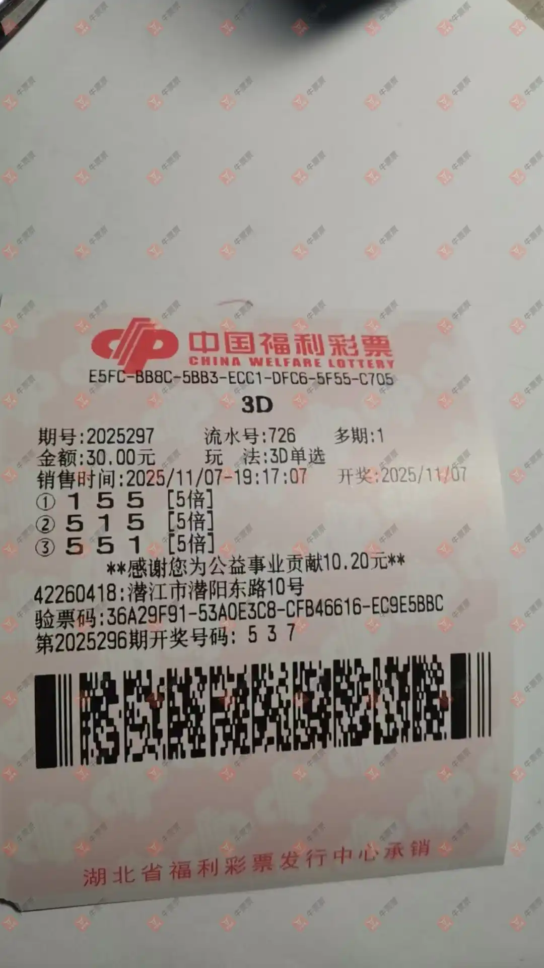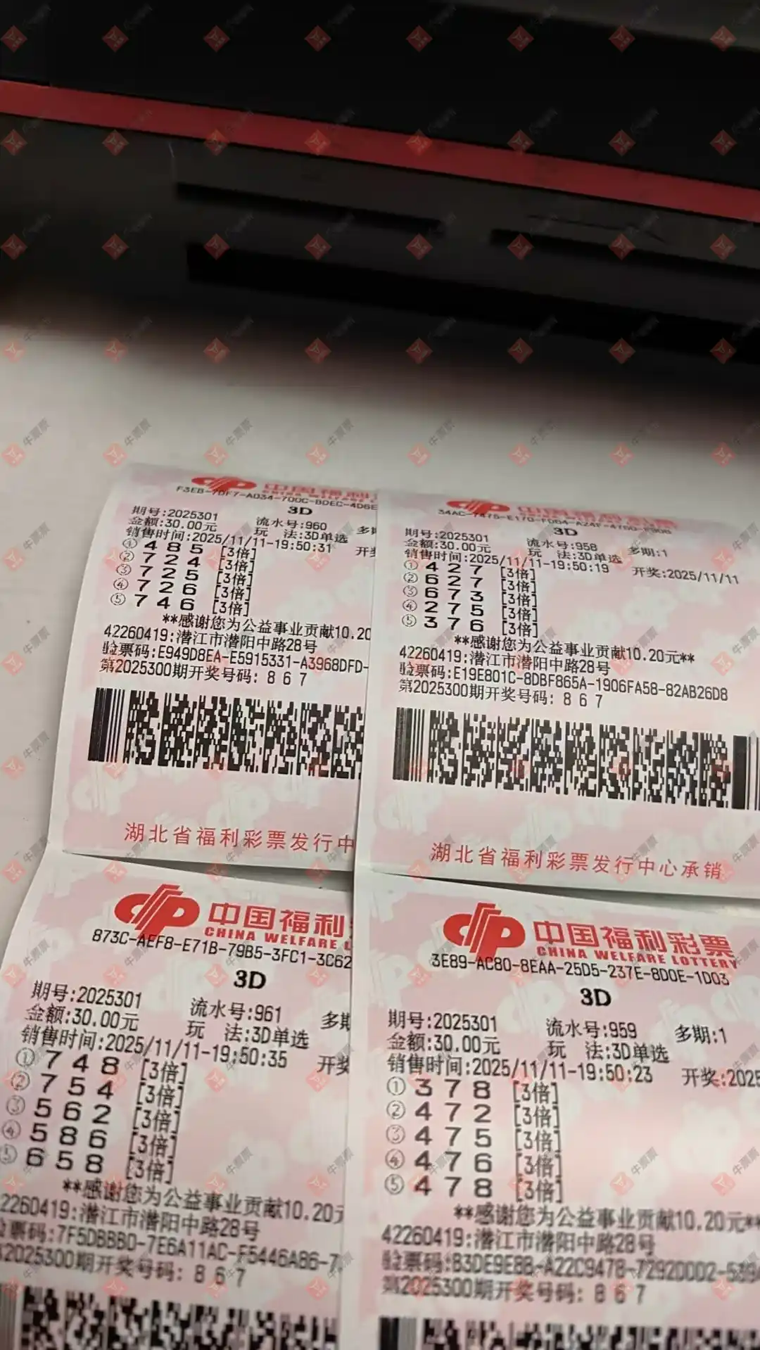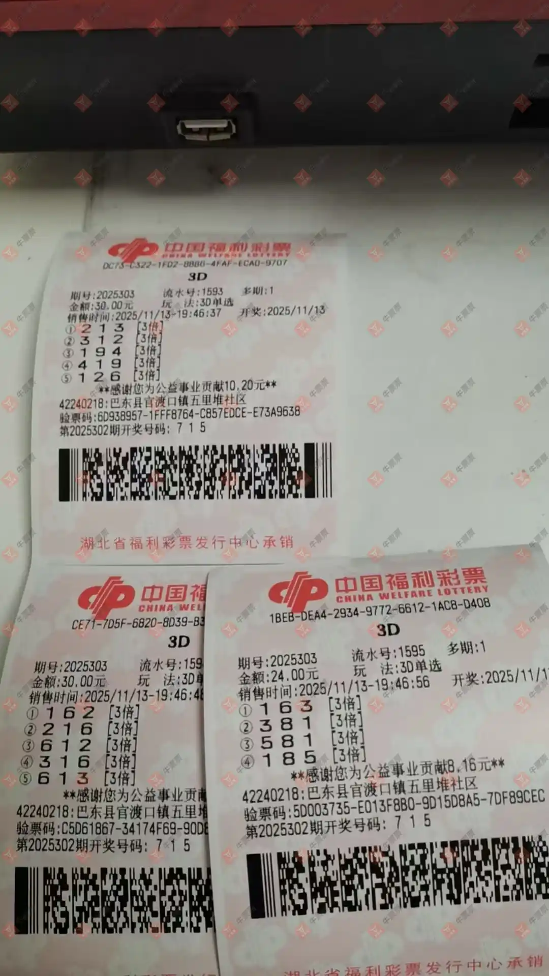 福彩3D 2025300期 晒中