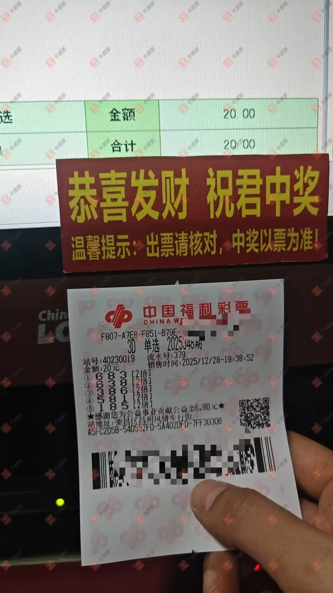 福彩3D 2025343期 晒中