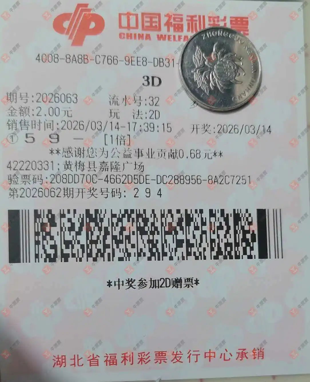 福彩3D 2026063期 晒中