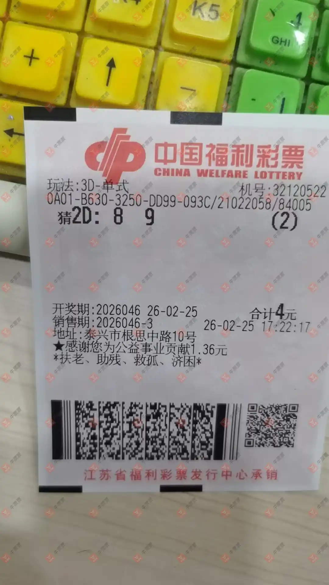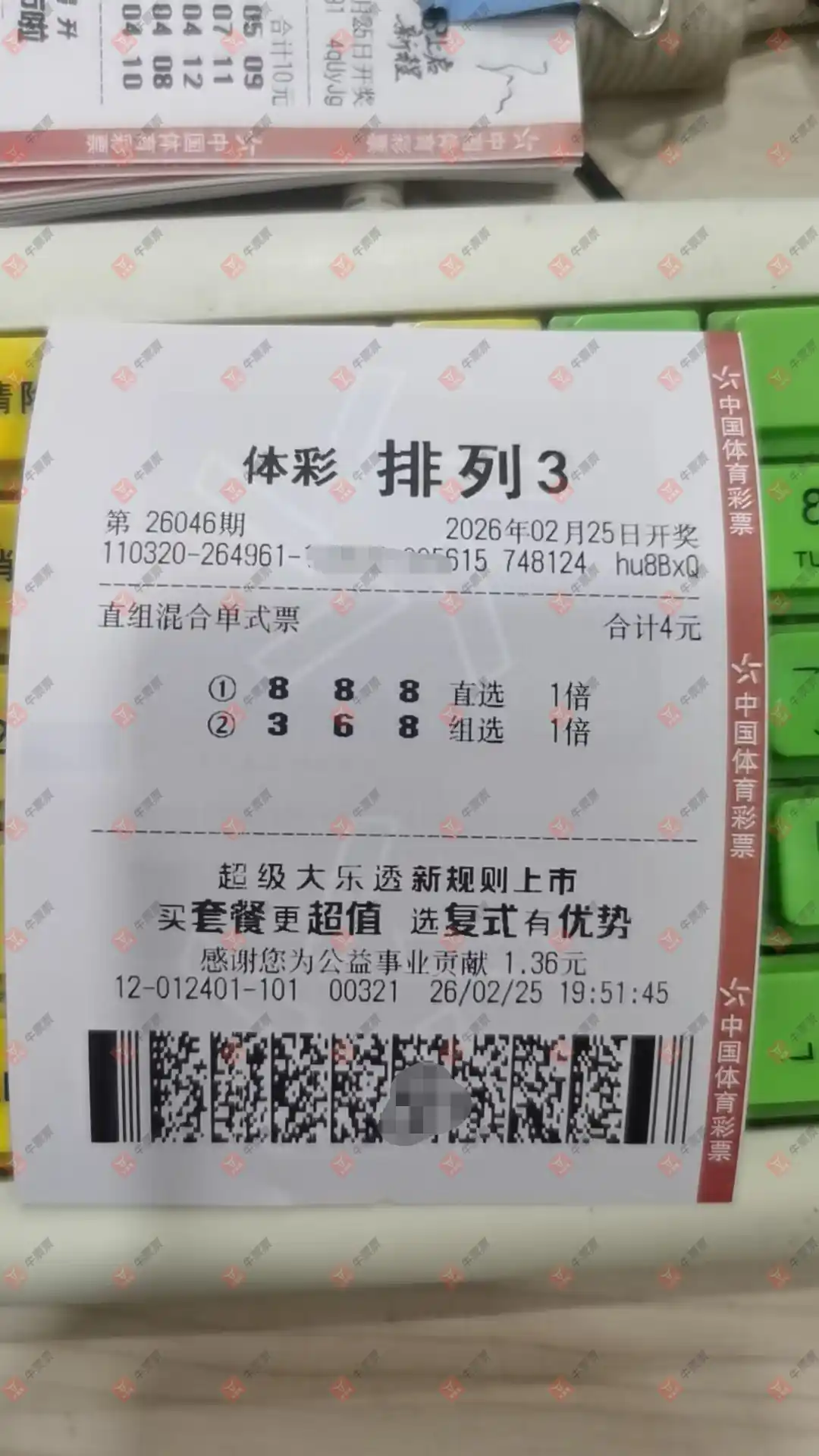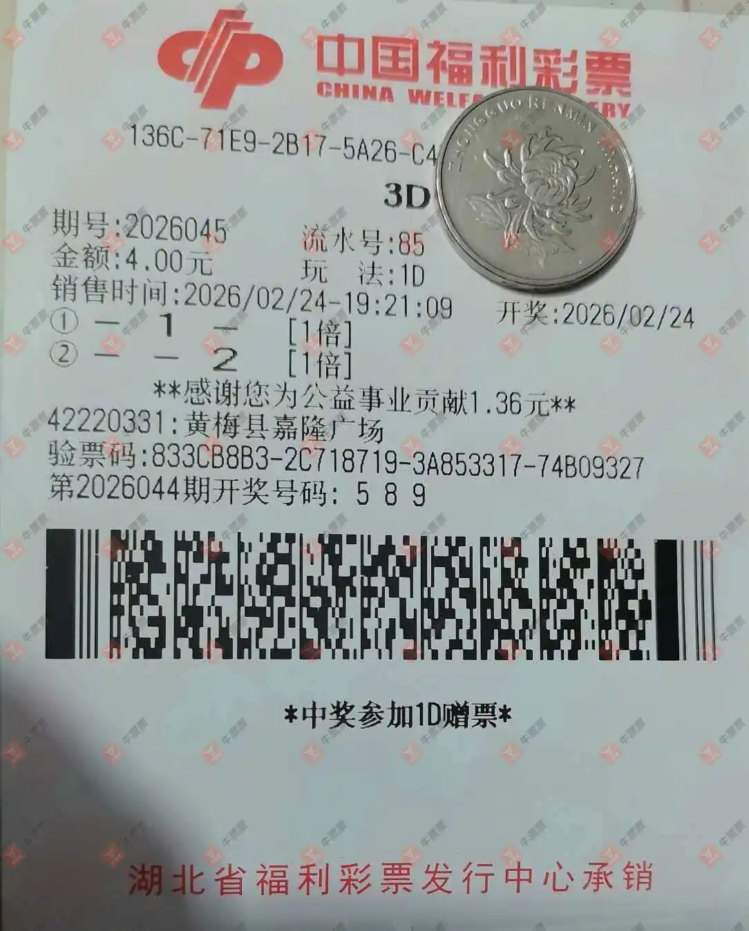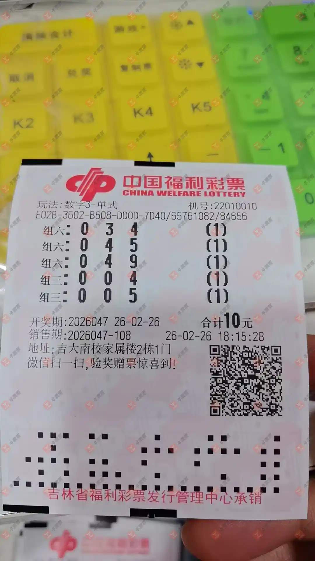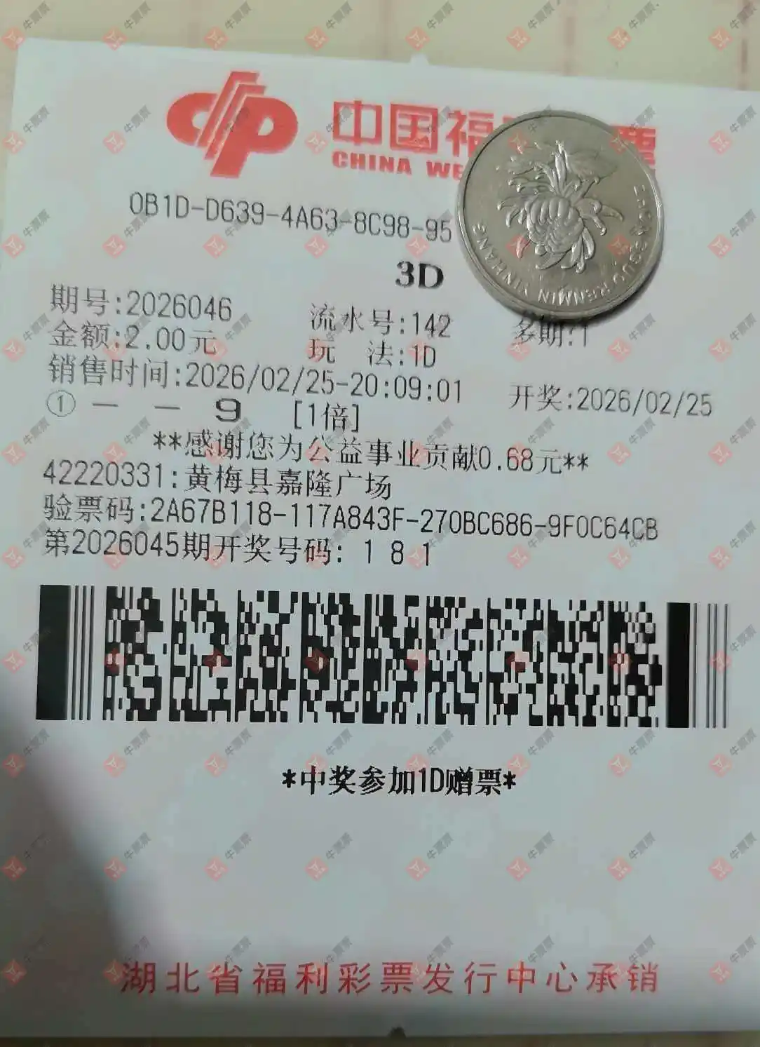 福彩3D 2026046期 晒中