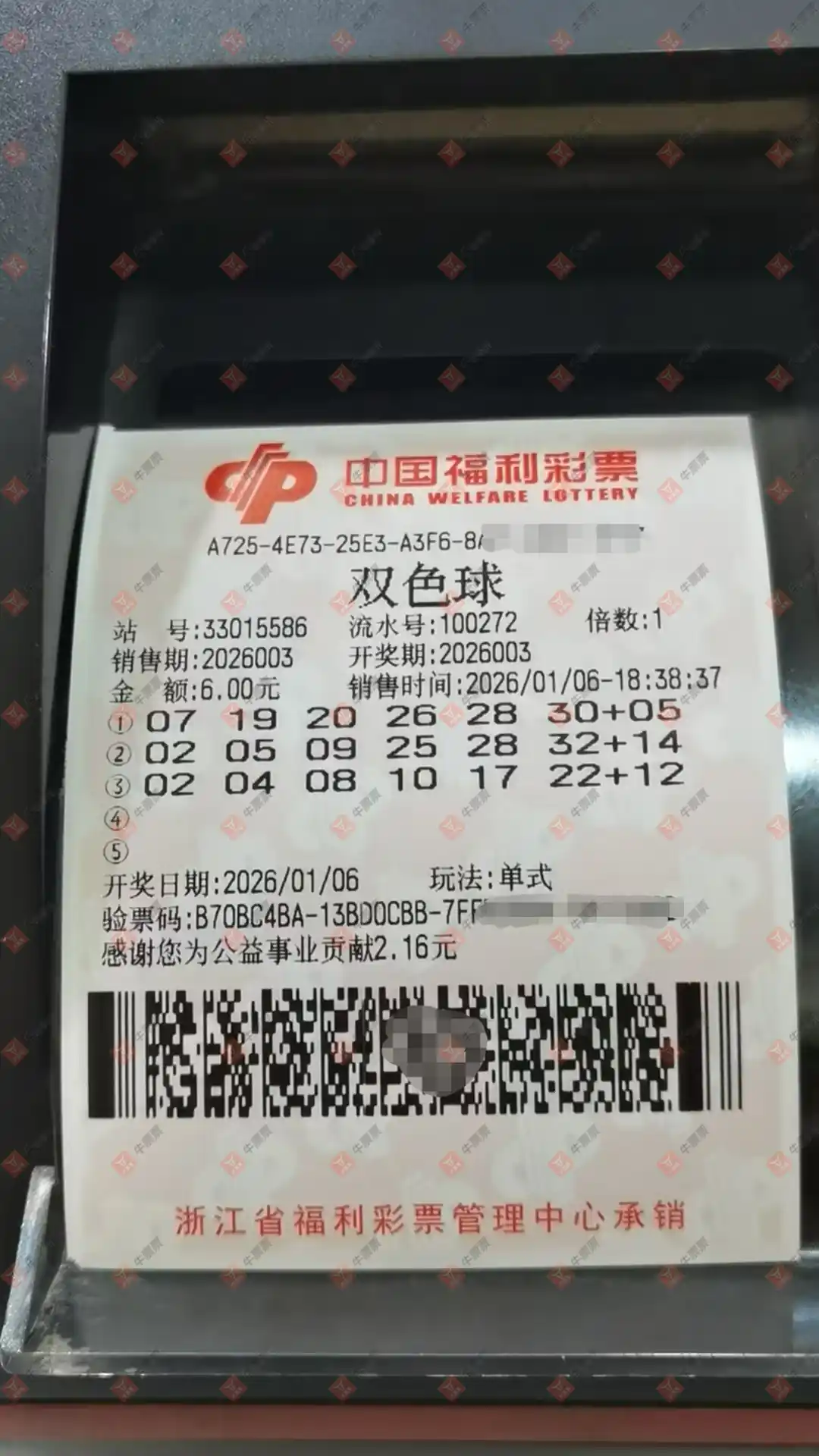 福彩3D 2026006期 晒中