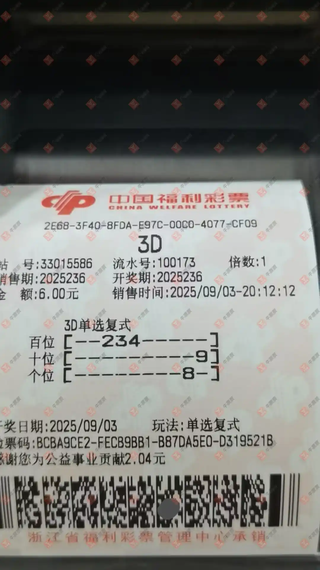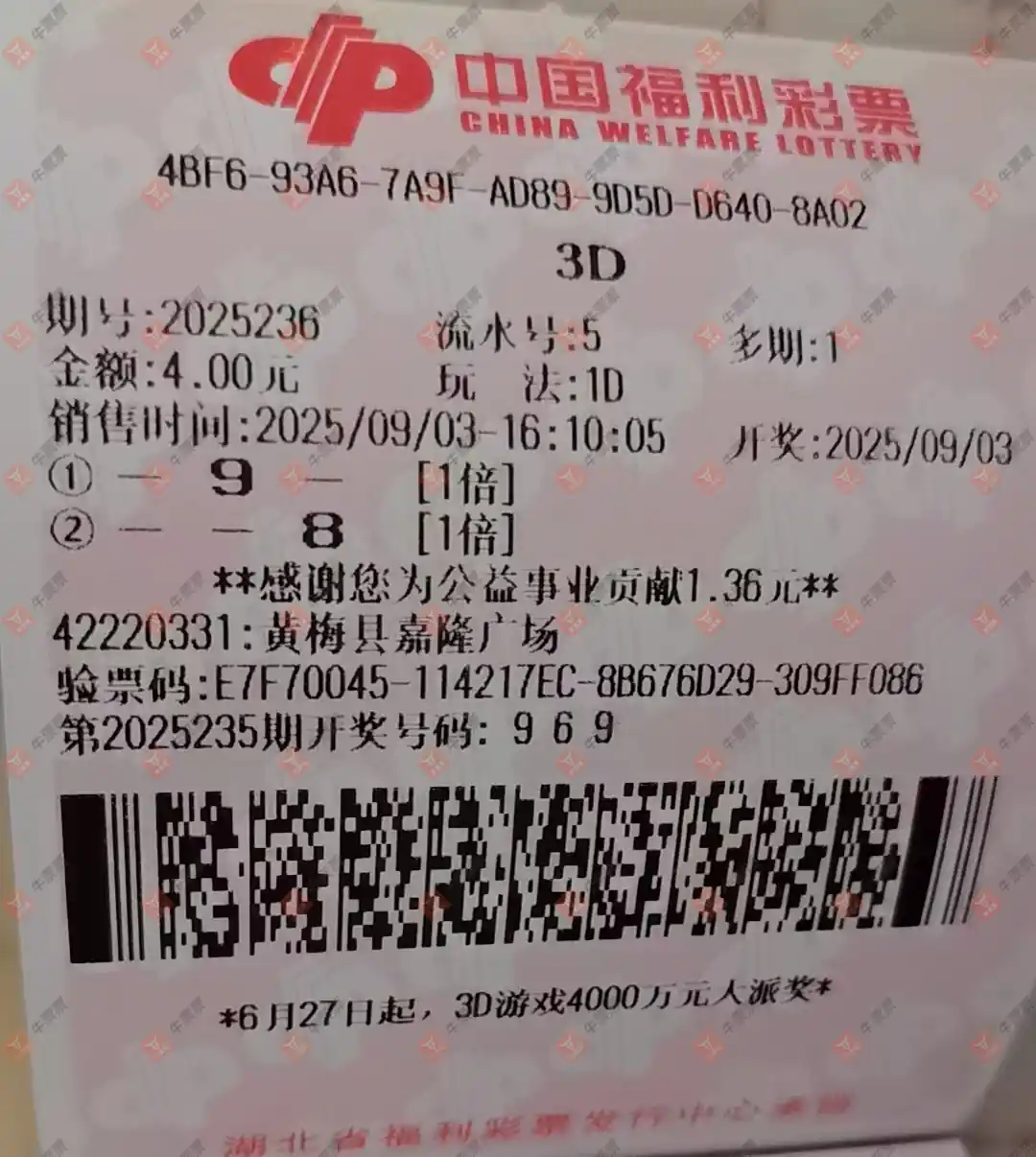 福彩3D 2025236期