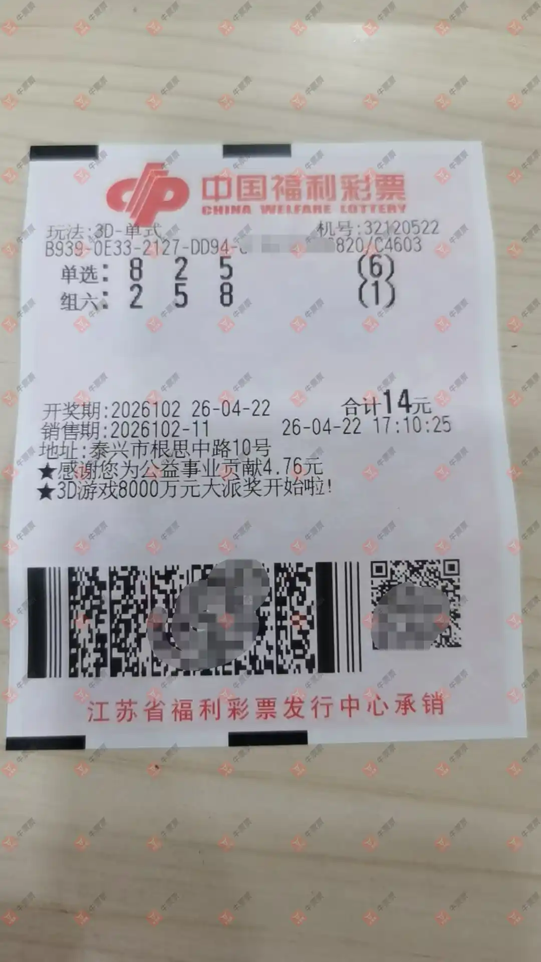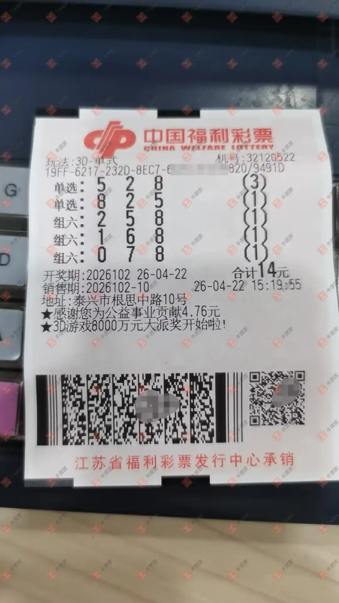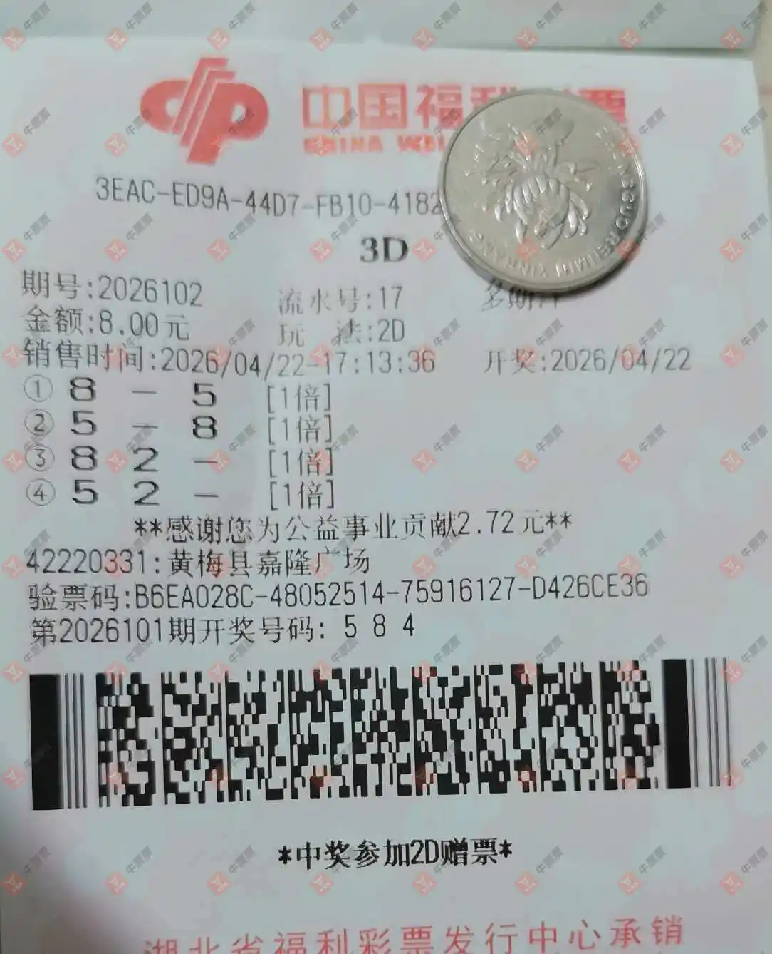福彩3D 2026102期 晒中