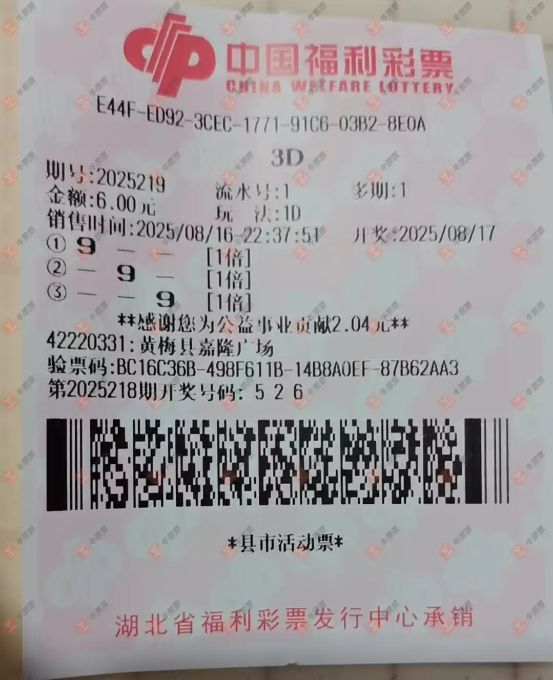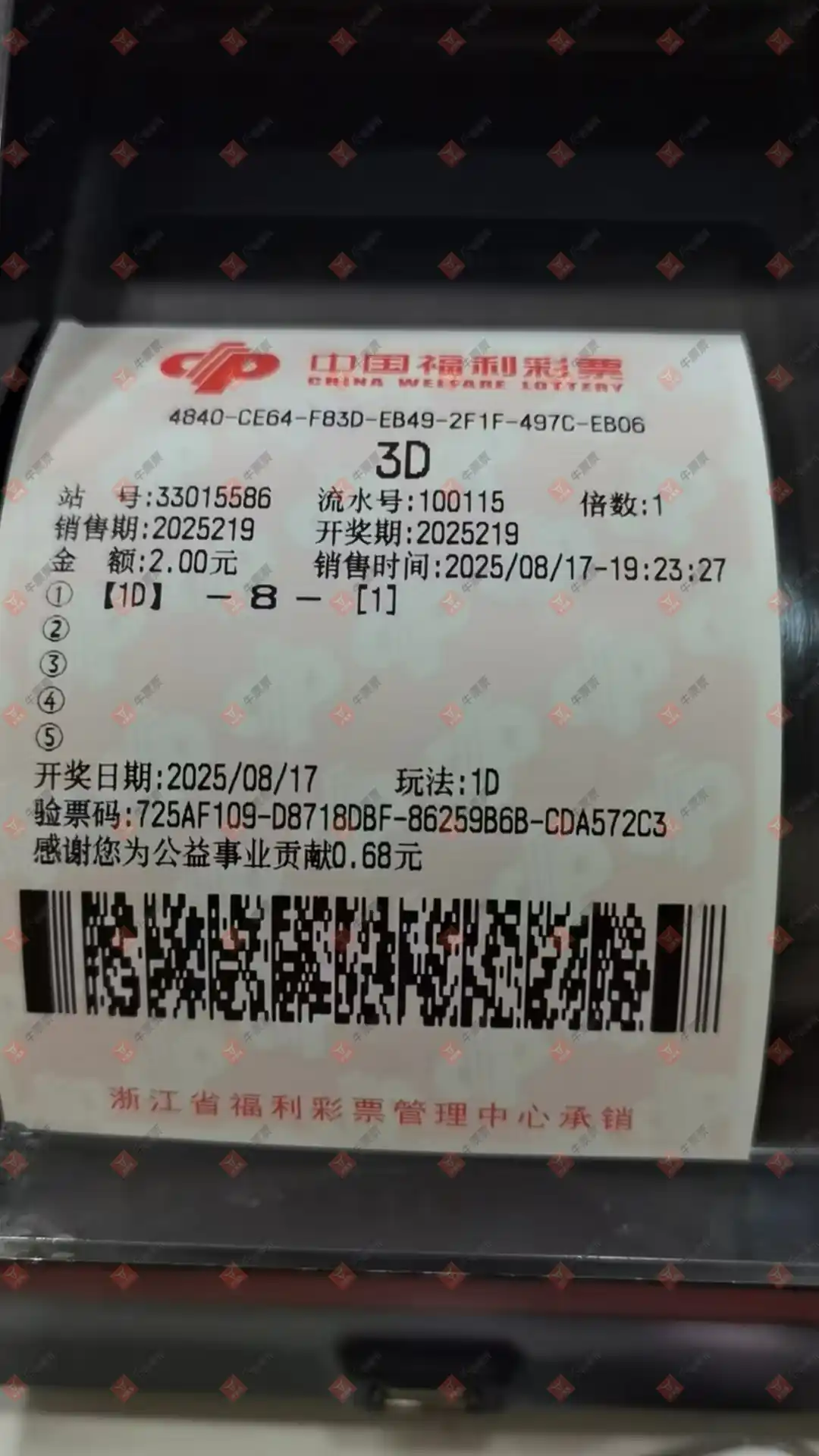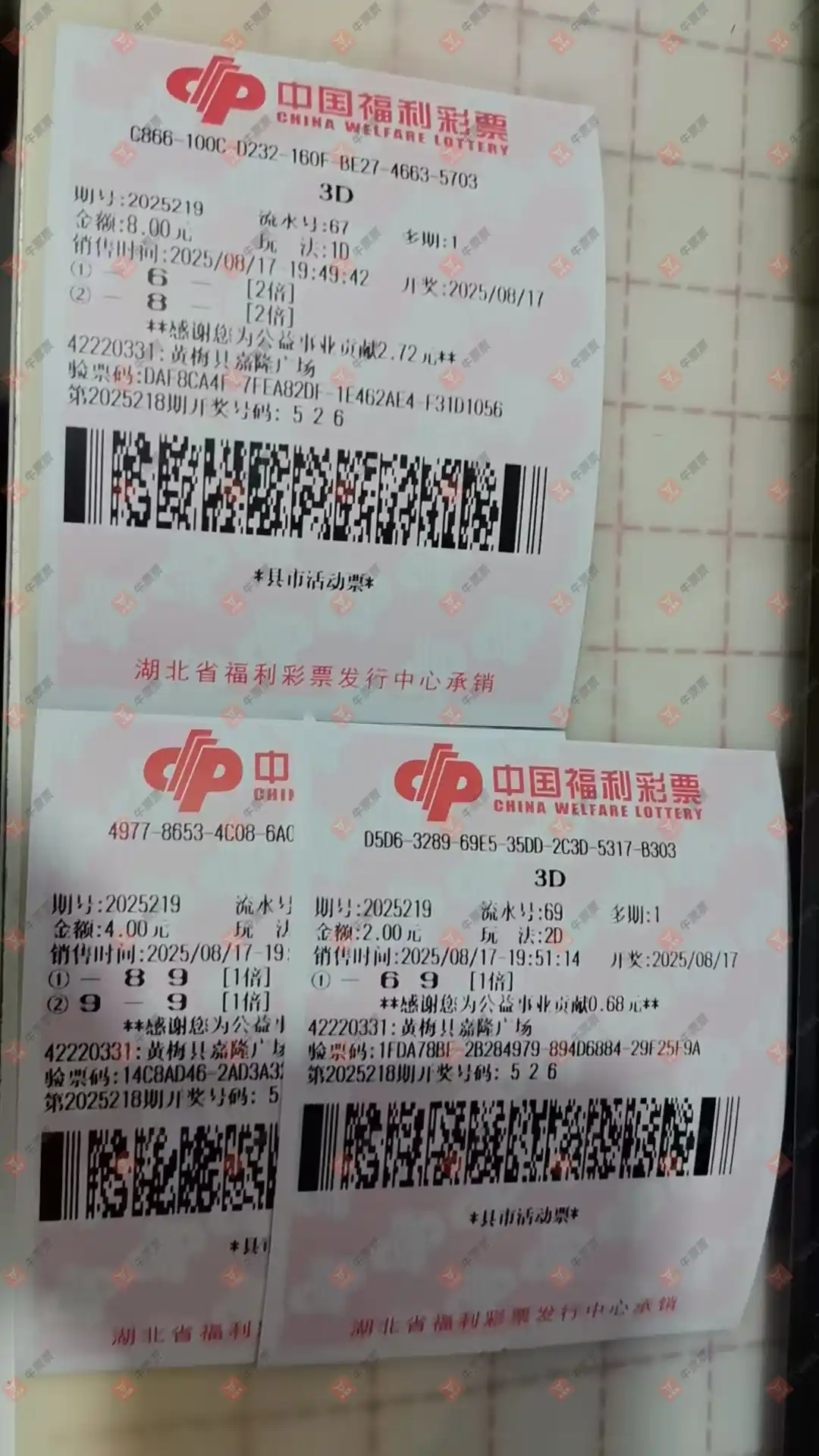 福彩3D 2025219期 晒中