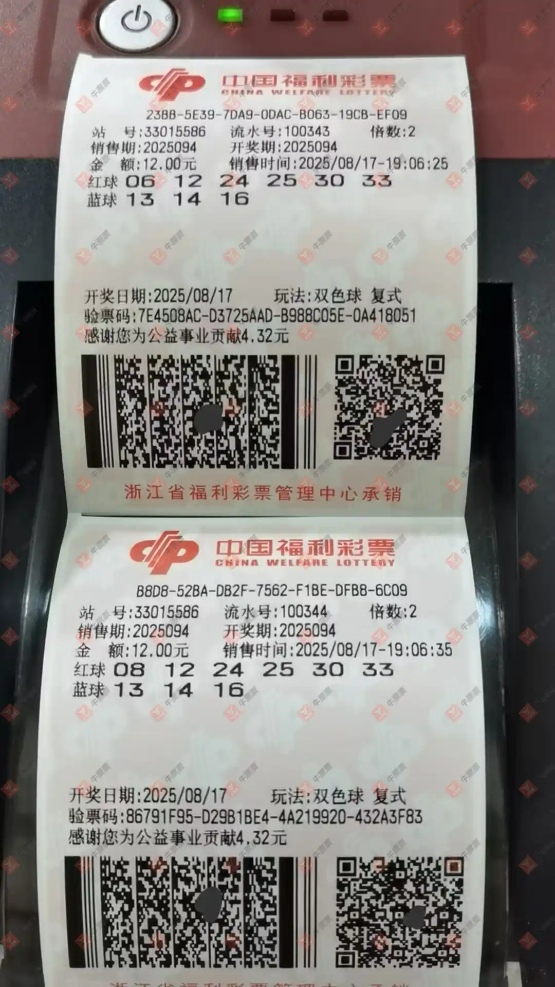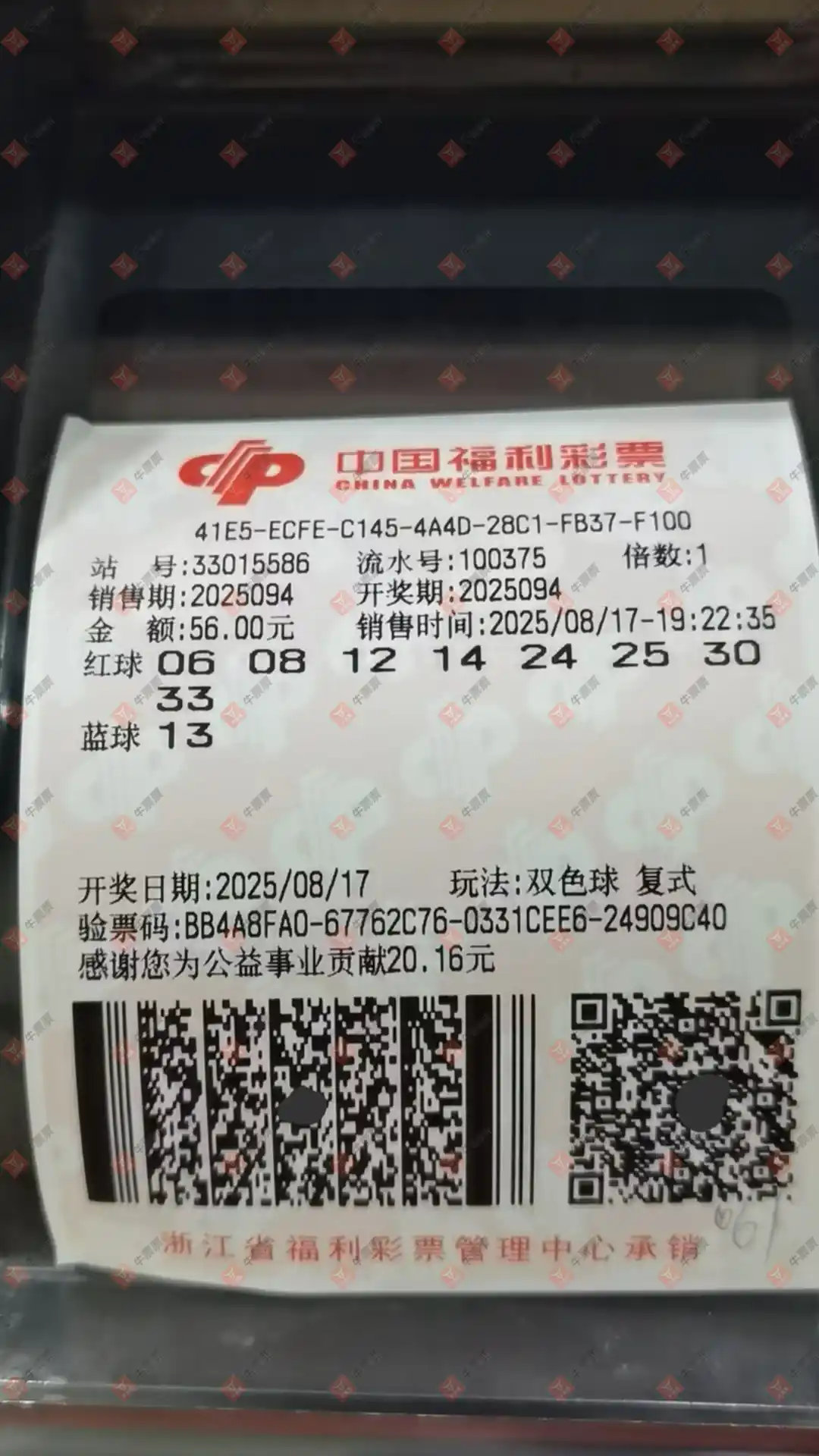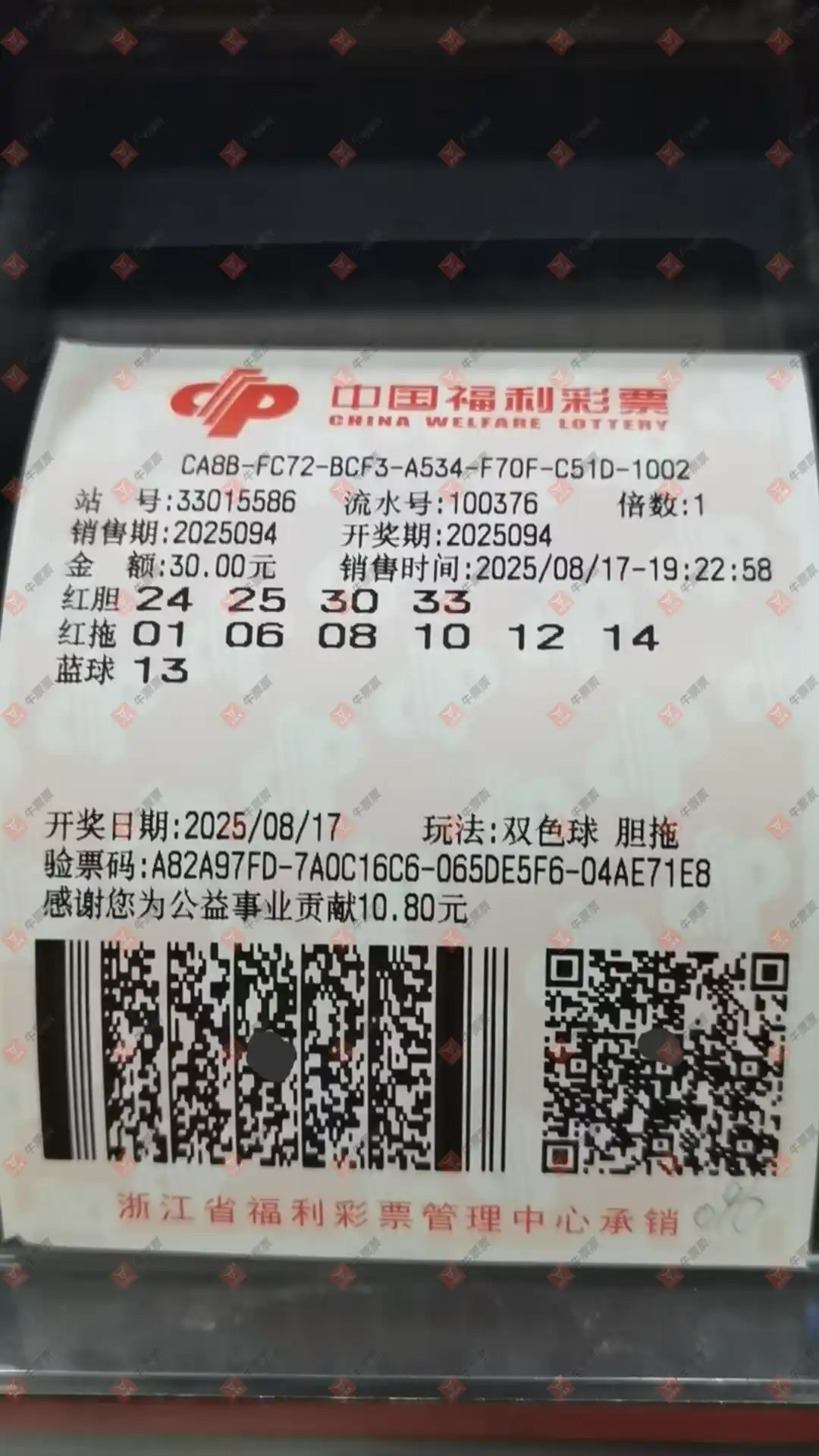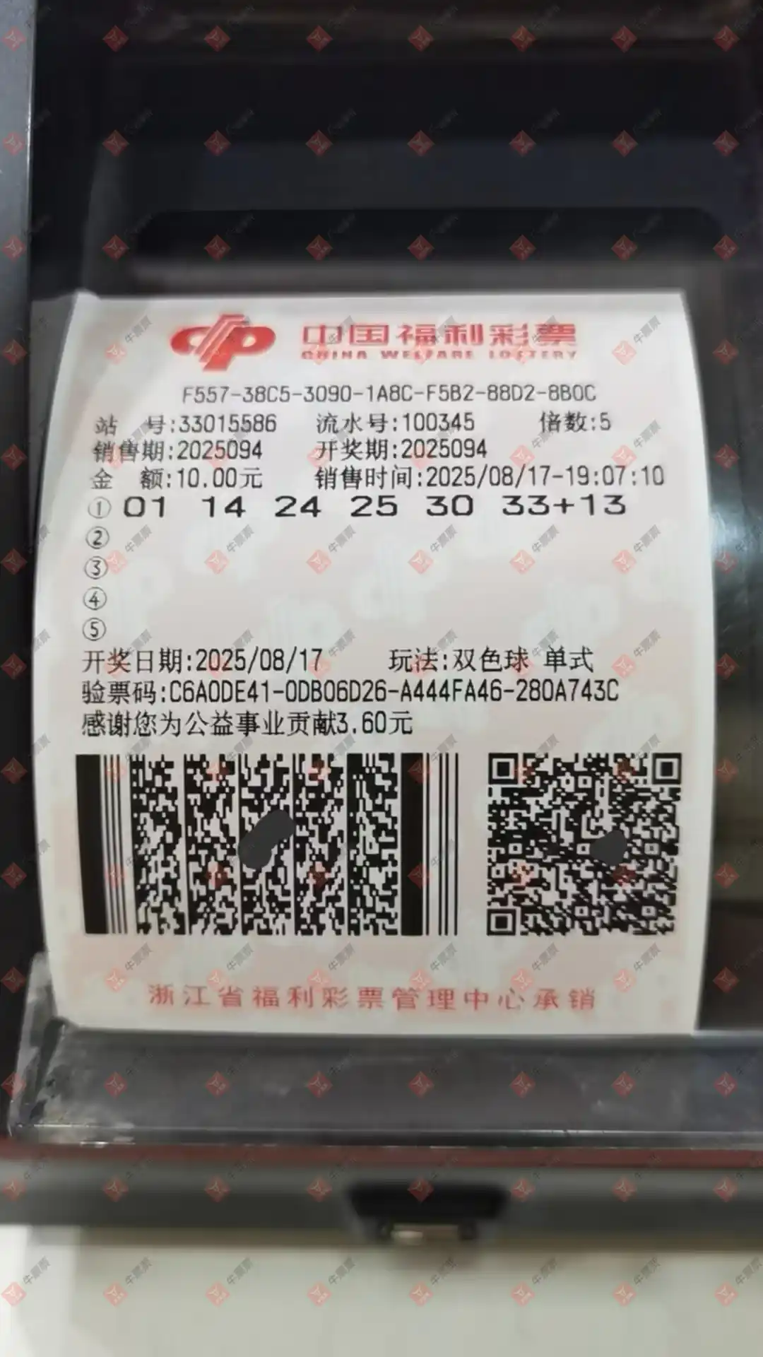 双色球 2025094期 晒中