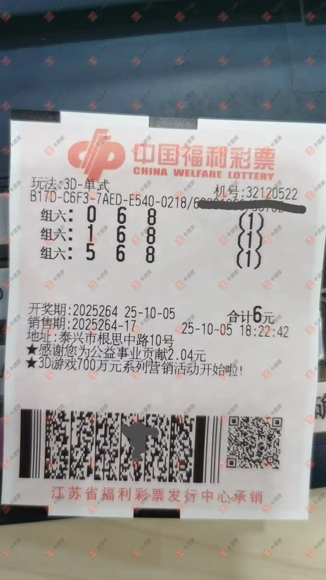 福彩3D 2025265期