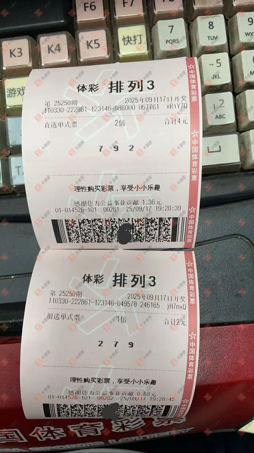 福彩3D 2025251期 晒中