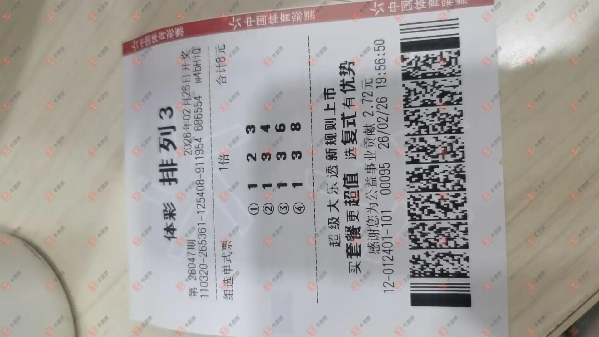 福彩3D 2026048期 晒中
