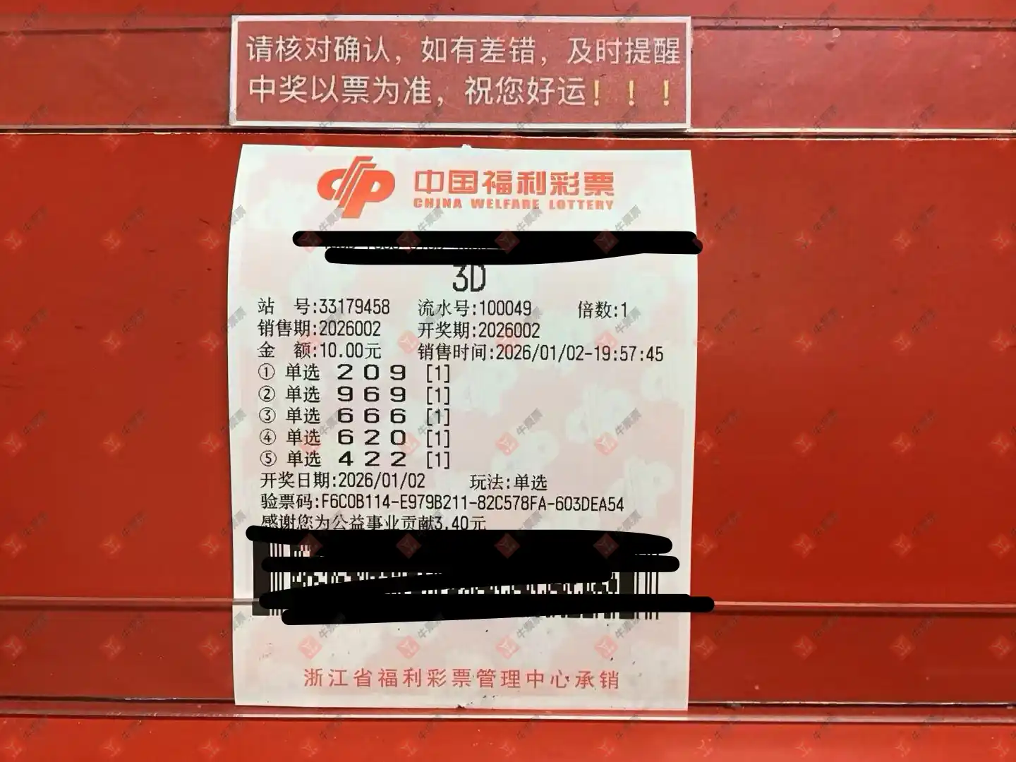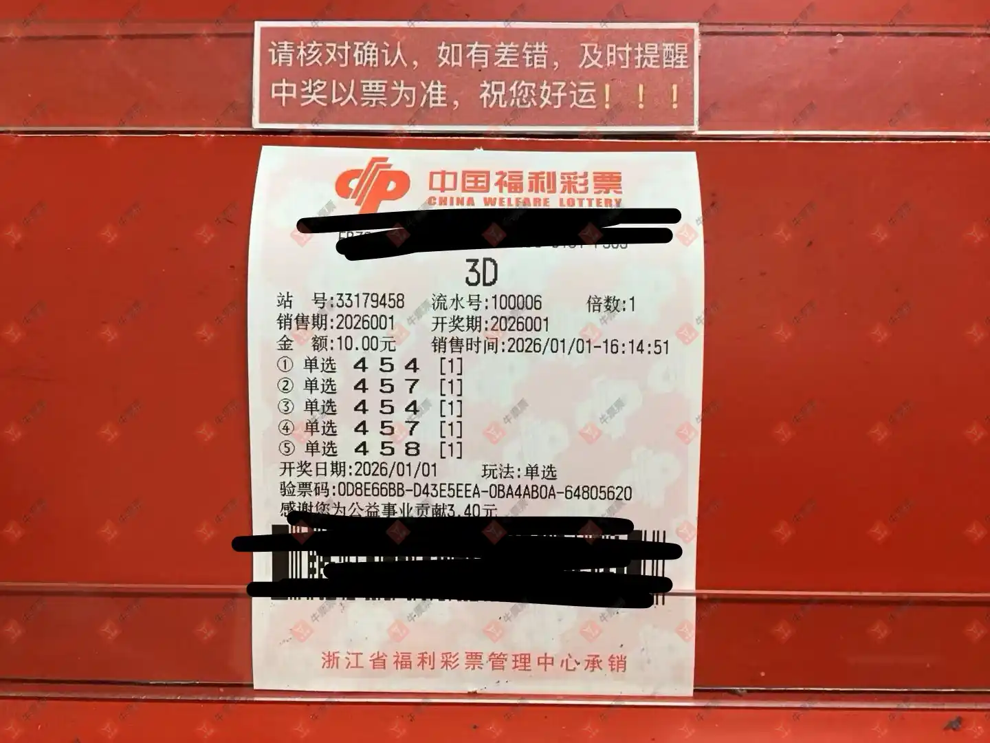 福彩3D 2026001期