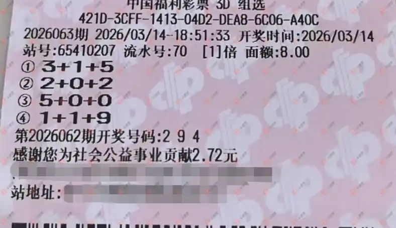 福彩3D 2026061期 晒中