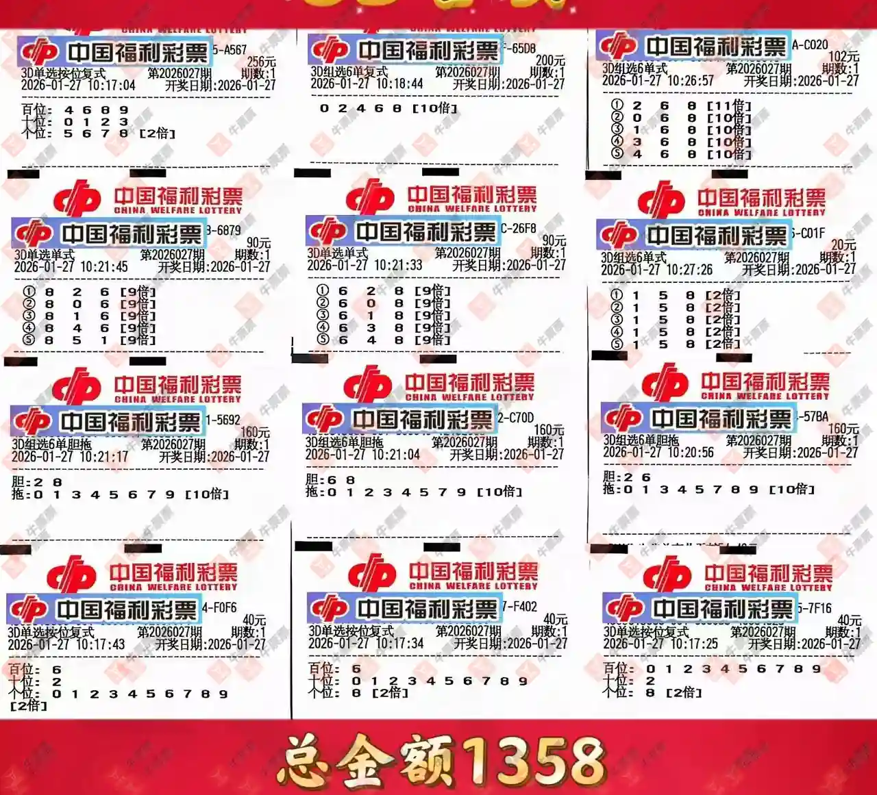 福彩3D 2026027期 晒中