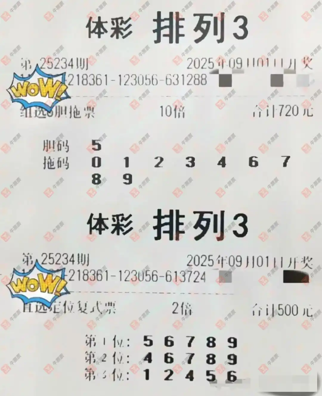 福彩3D 2025234期 晒中