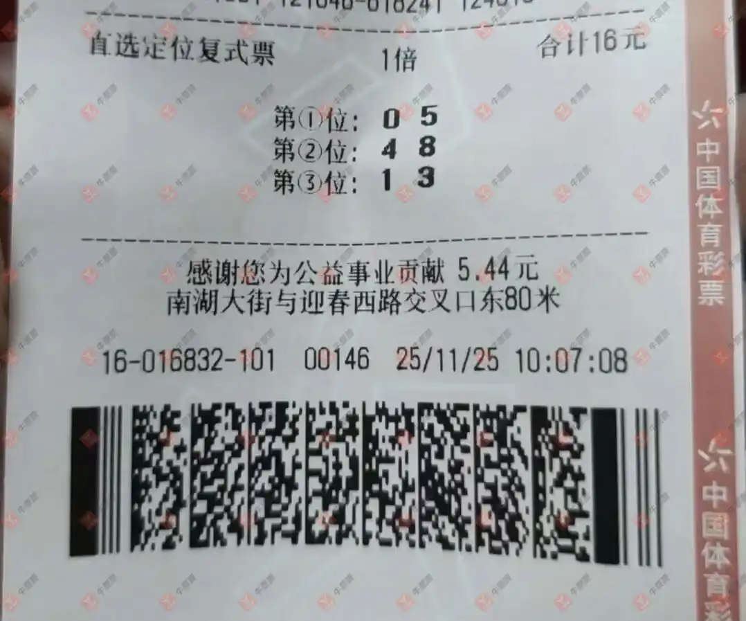 福彩3D 2025314期 晒中