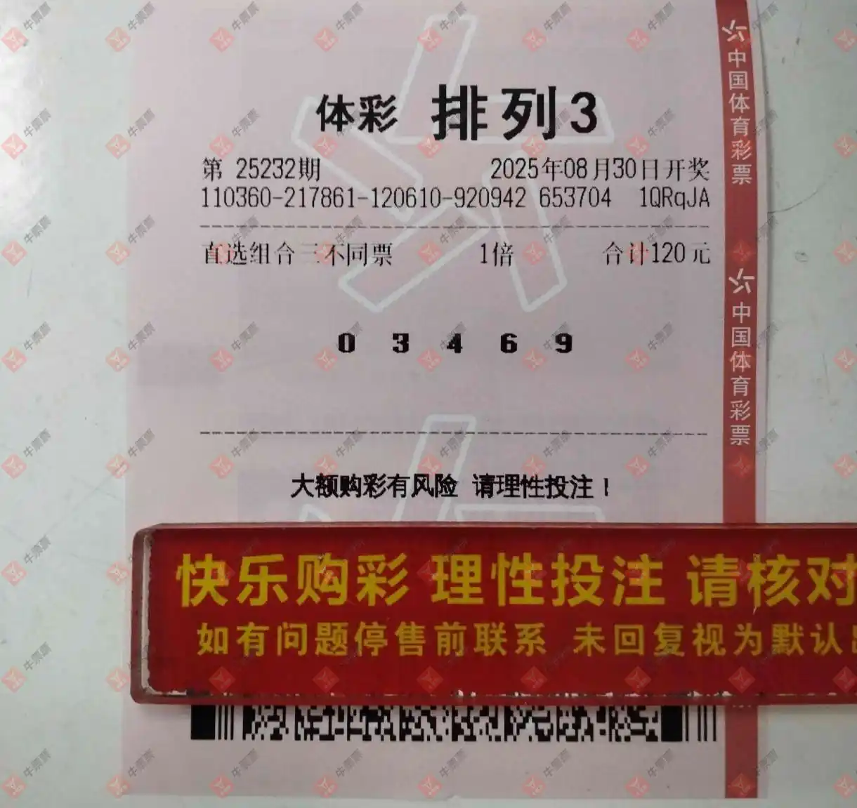 福彩3D 2025232期 晒中