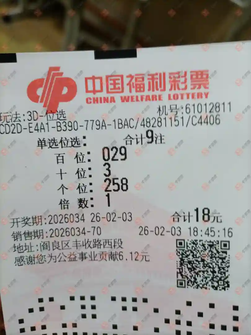 福彩3D 2026034期