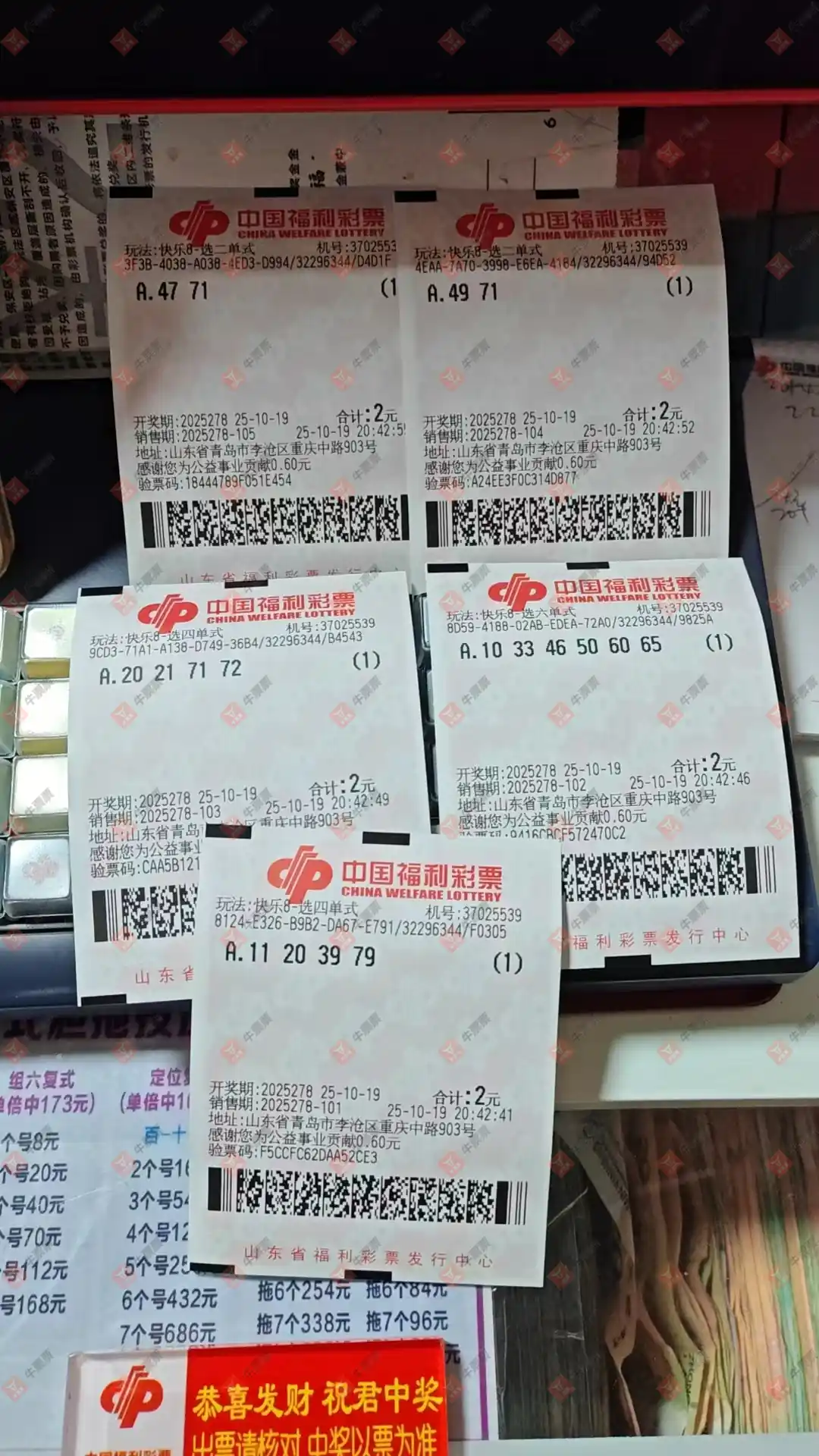 快乐8 2025278期 晒中