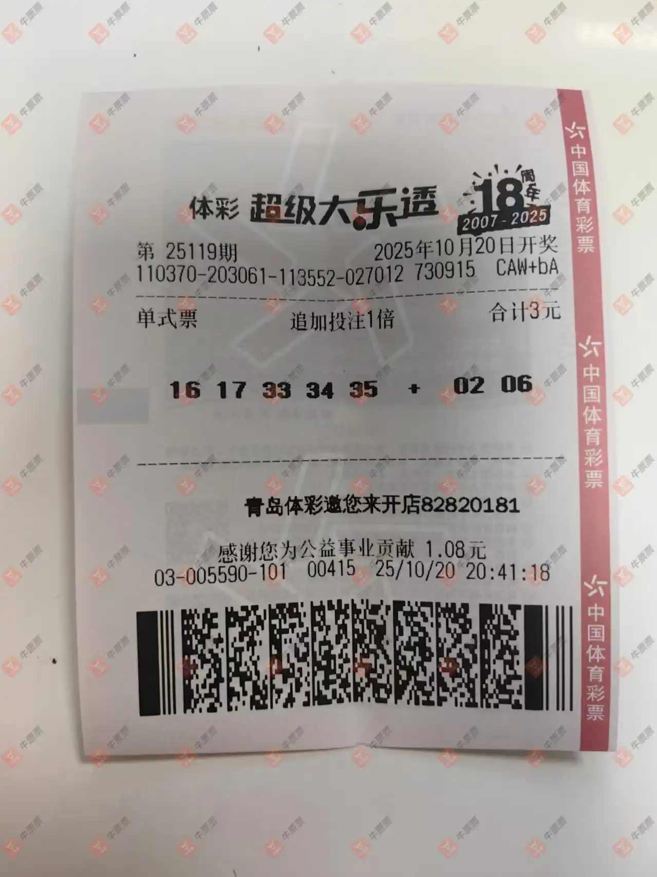 大乐透 2025118期 晒中