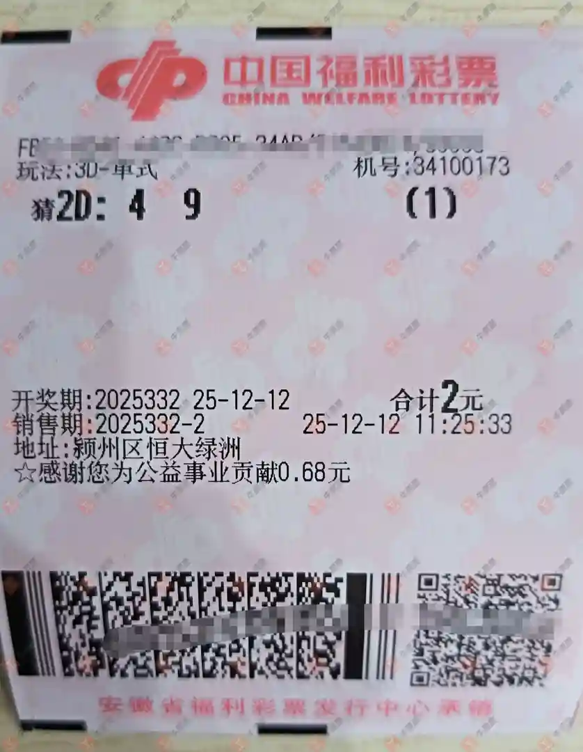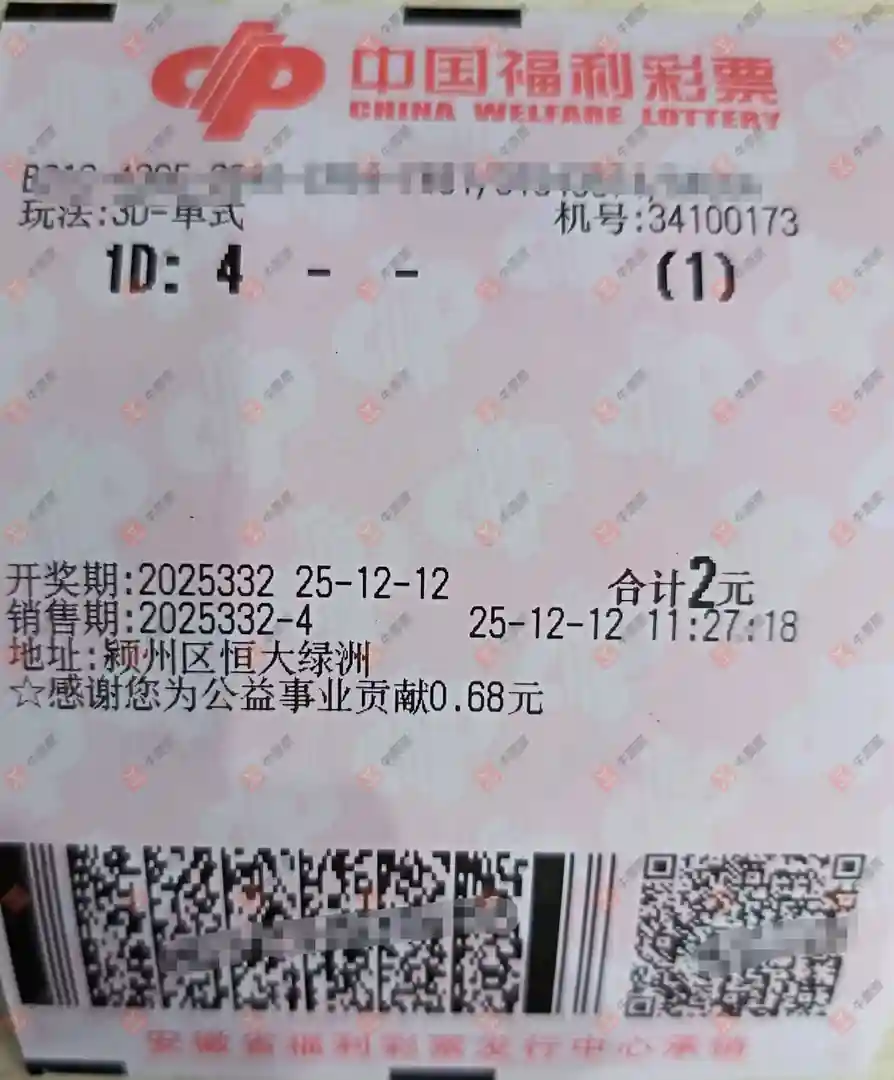 福彩3D 2025332期