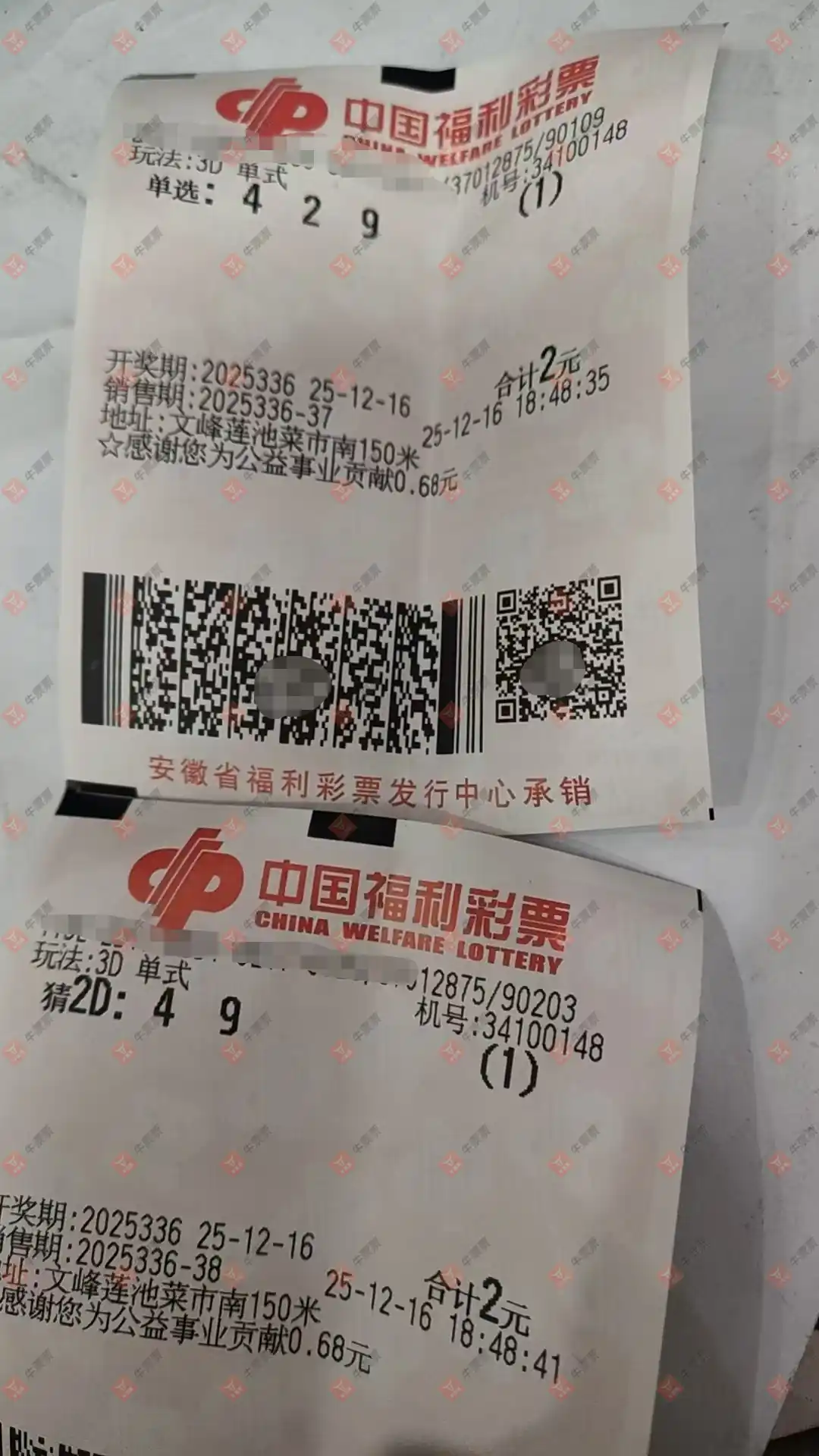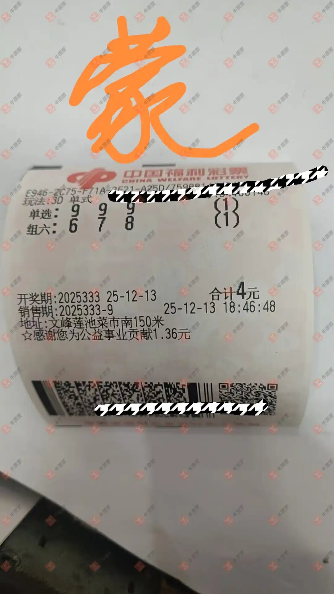 福彩3D 2025336期 晒中