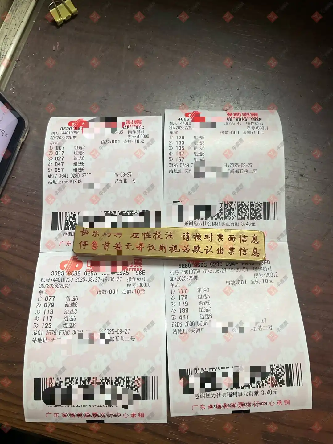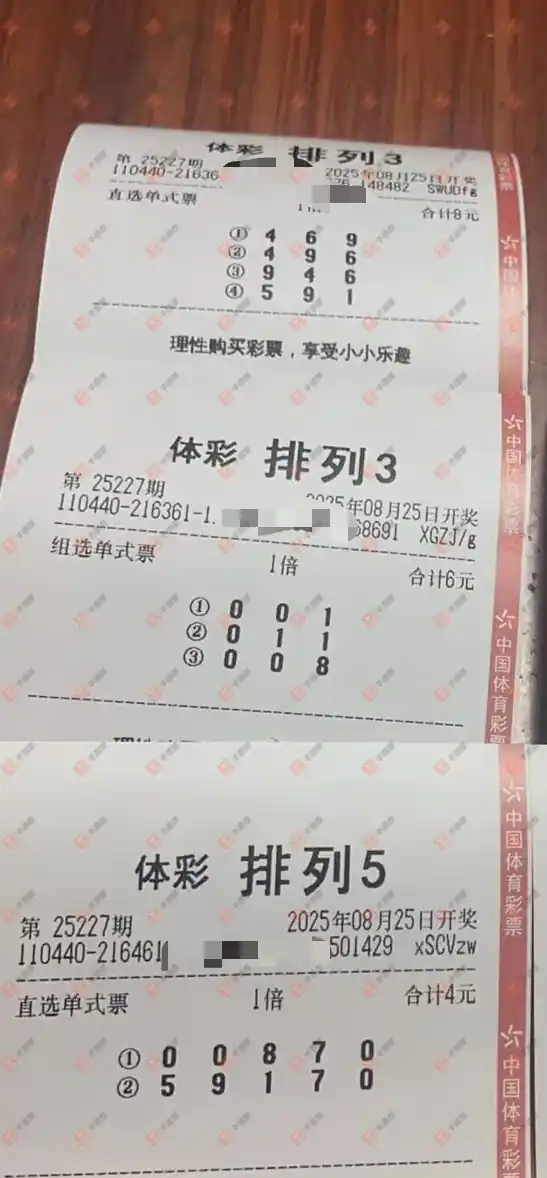福彩3D 2025227期 晒中
