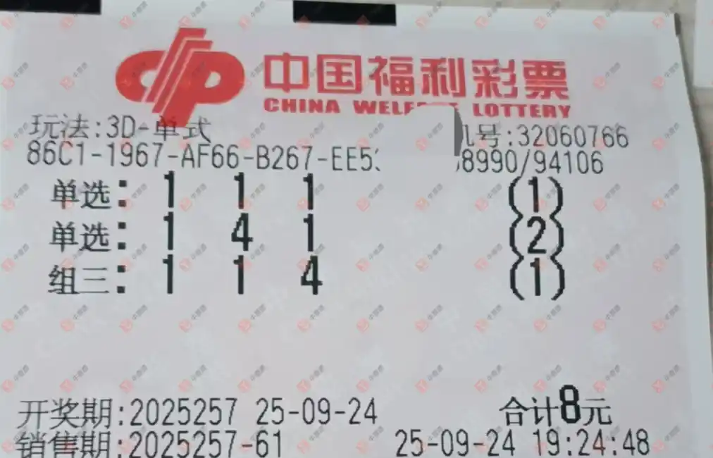 福彩3D 2025257期