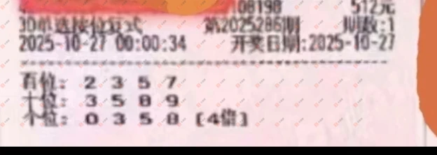 福彩3D 2025288期 晒中