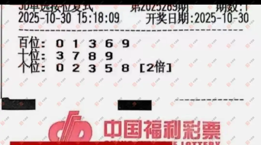 福彩3D 2025291期 晒中
