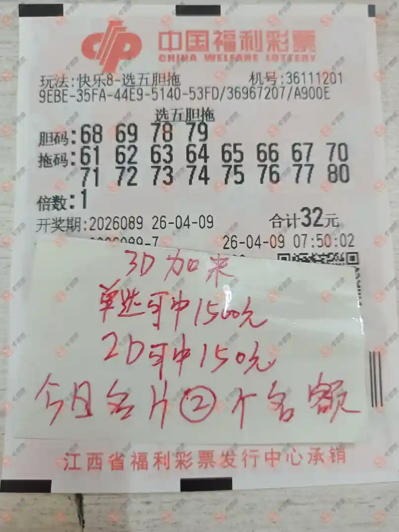 快乐8 2026089期 晒中