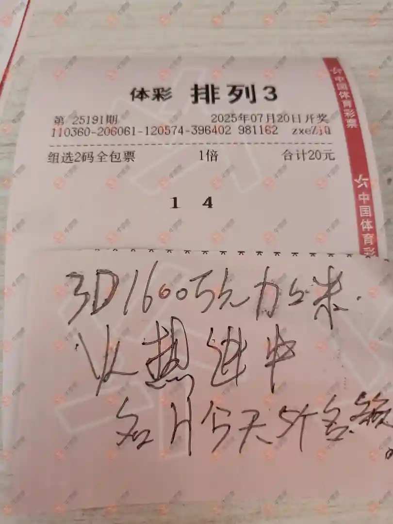 竞彩 20250720期 晒中
