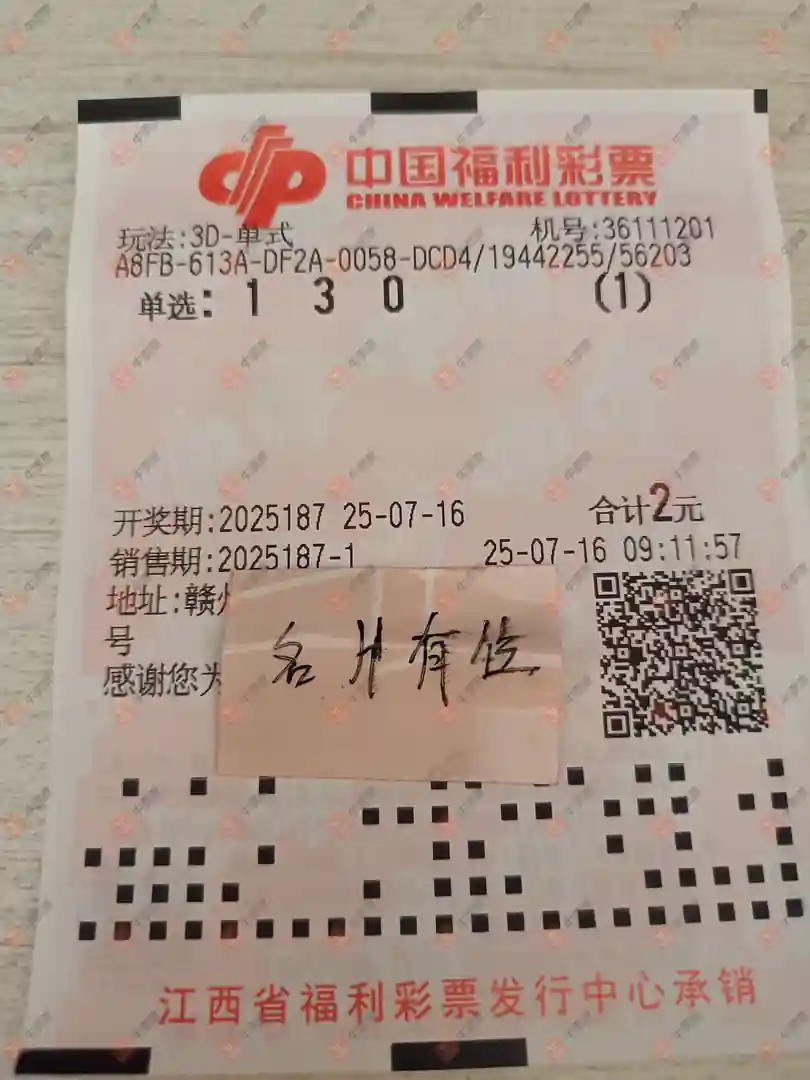 福彩3D 2025187期