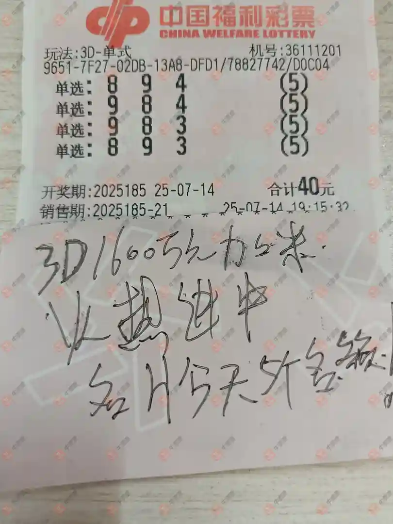 福彩3D 2025185期
