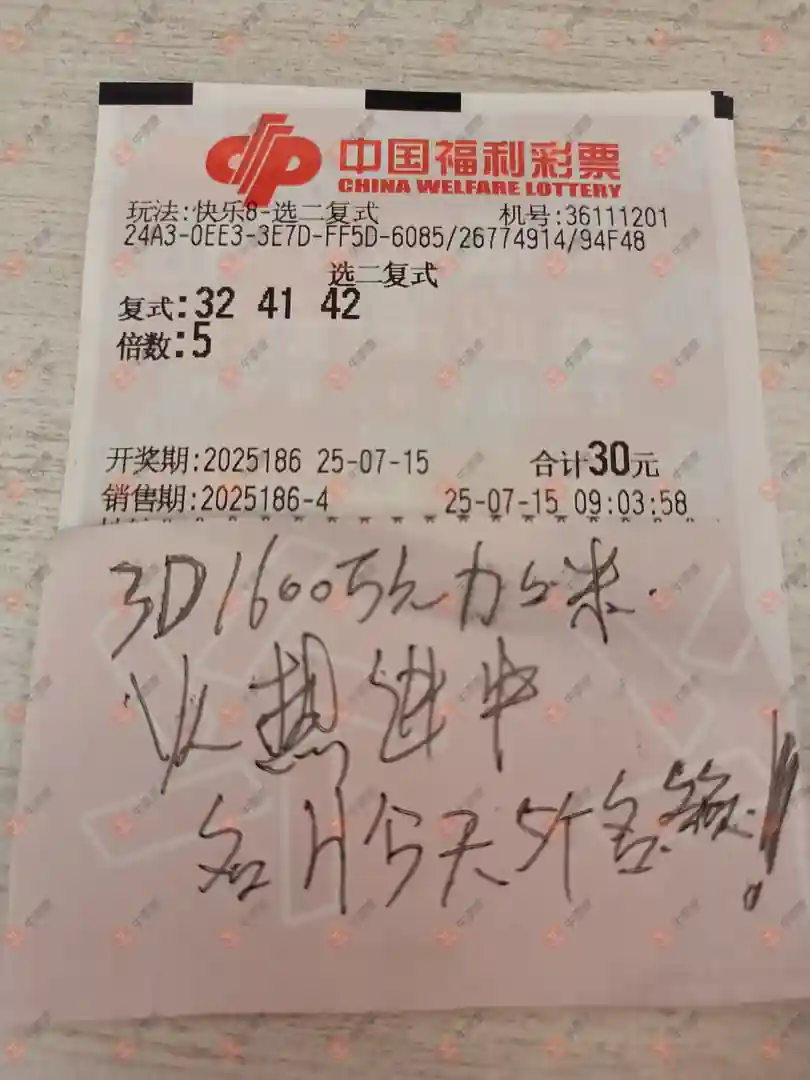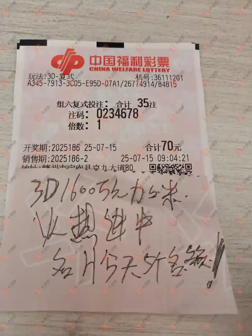 福彩3D 2025186期