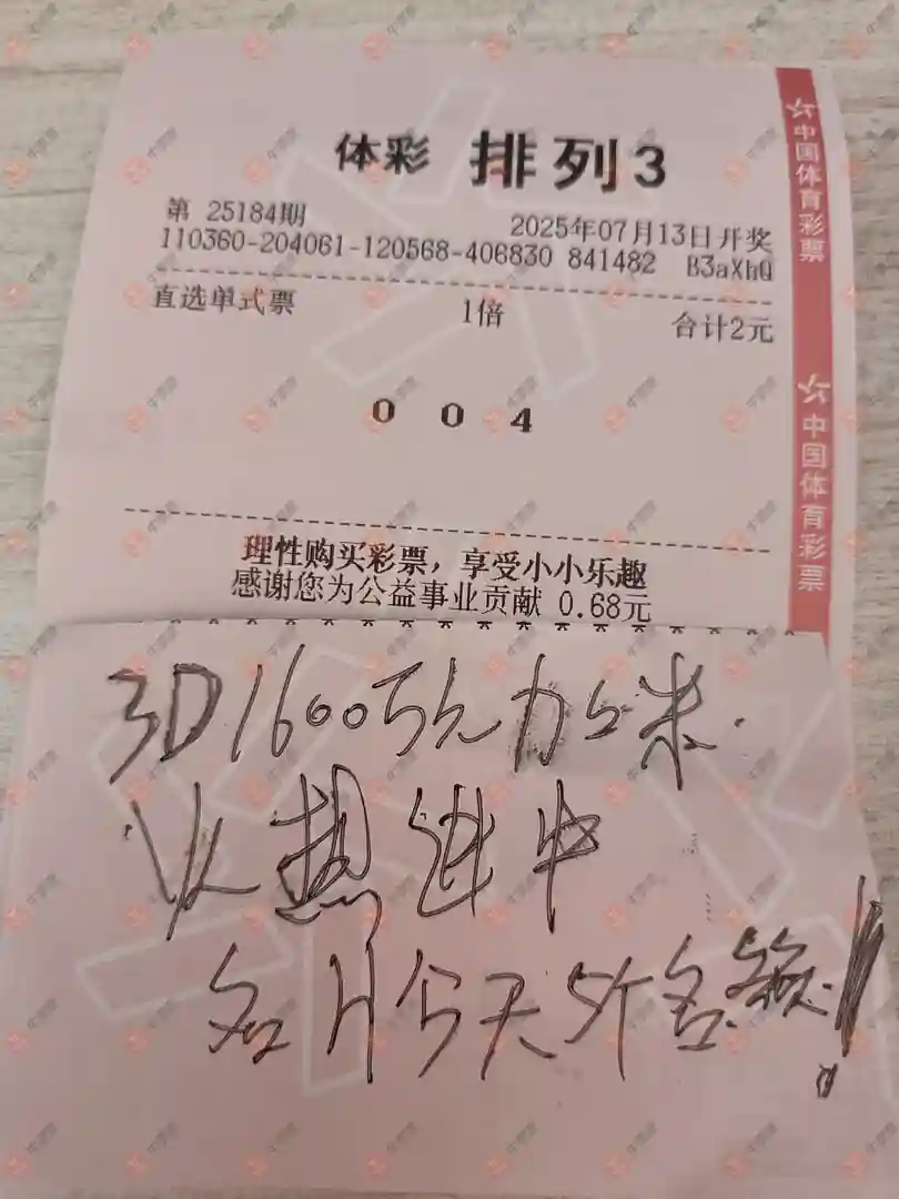 福彩3D 2025184期