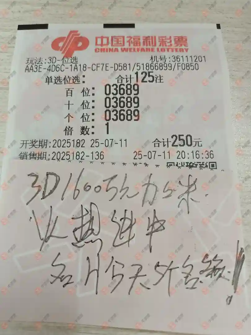 福彩3D 2025182期