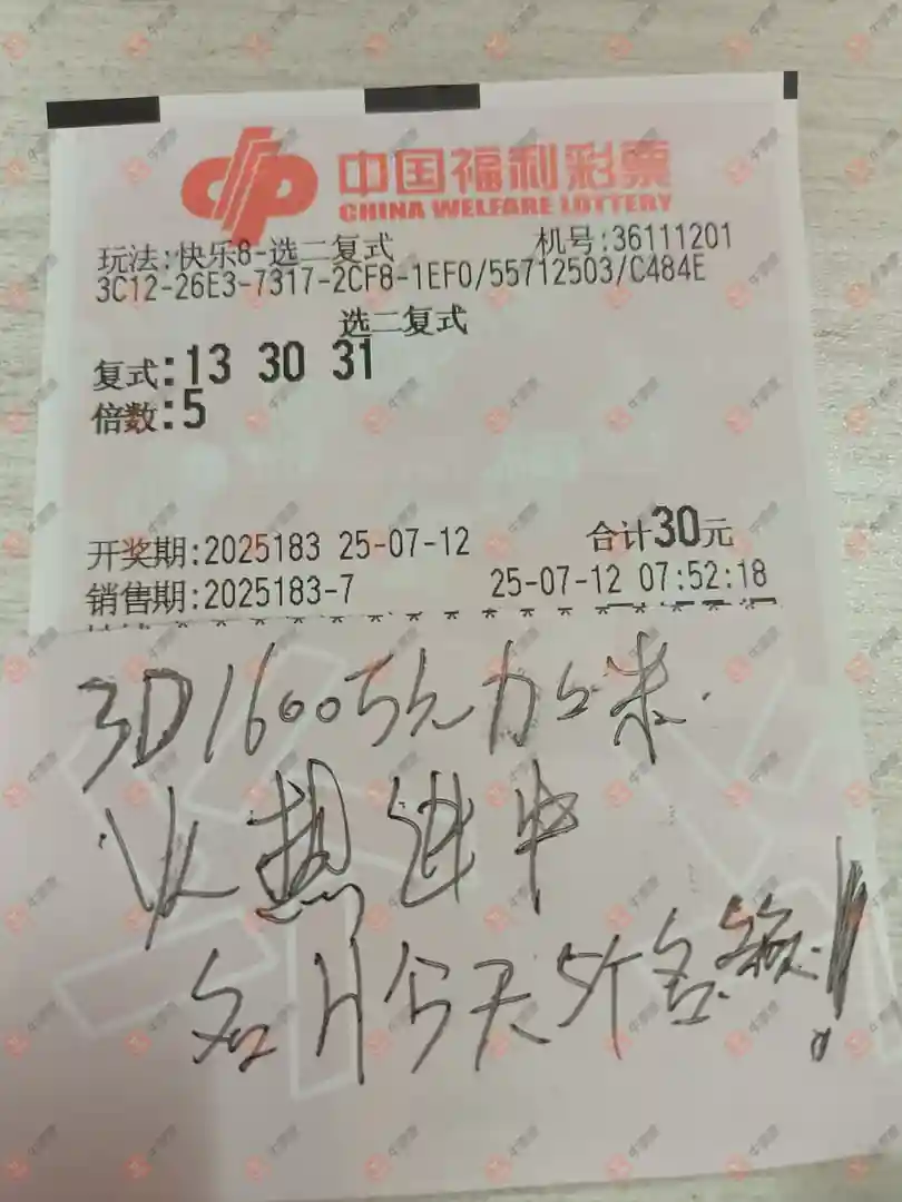 快乐8 2025183期 晒中