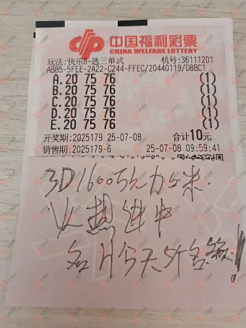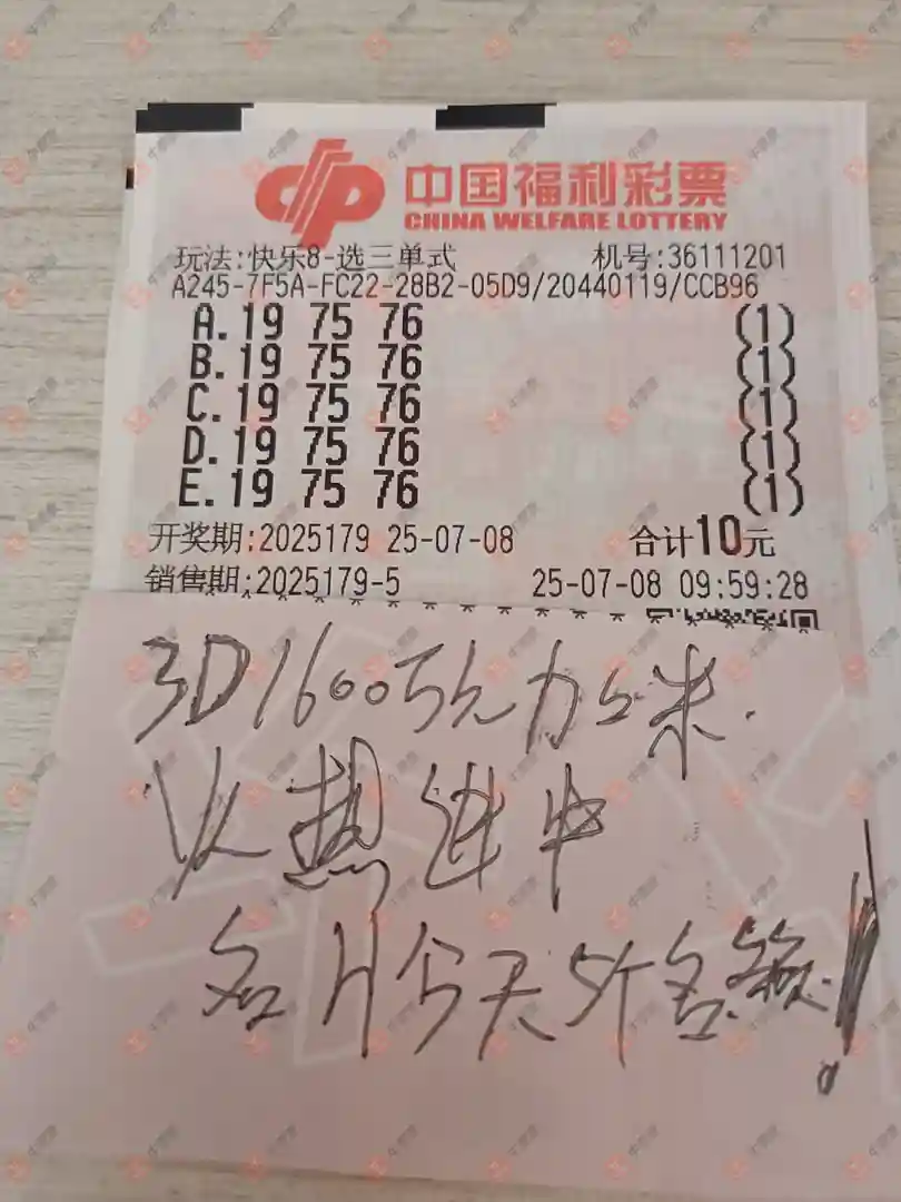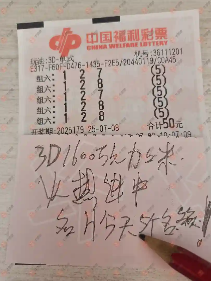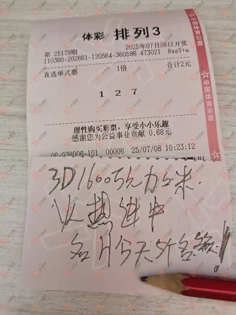 福彩3D 2025179期 晒中