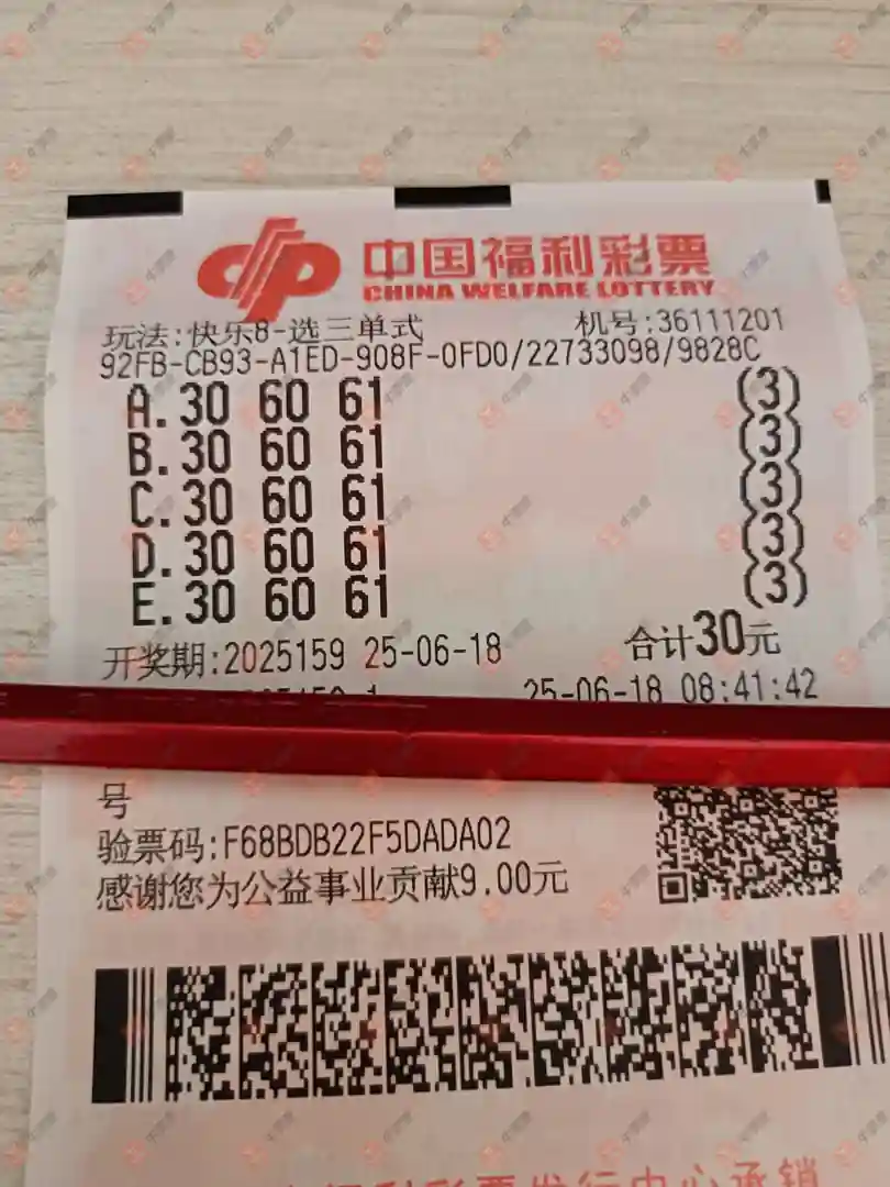 快乐8 2025159期 晒中